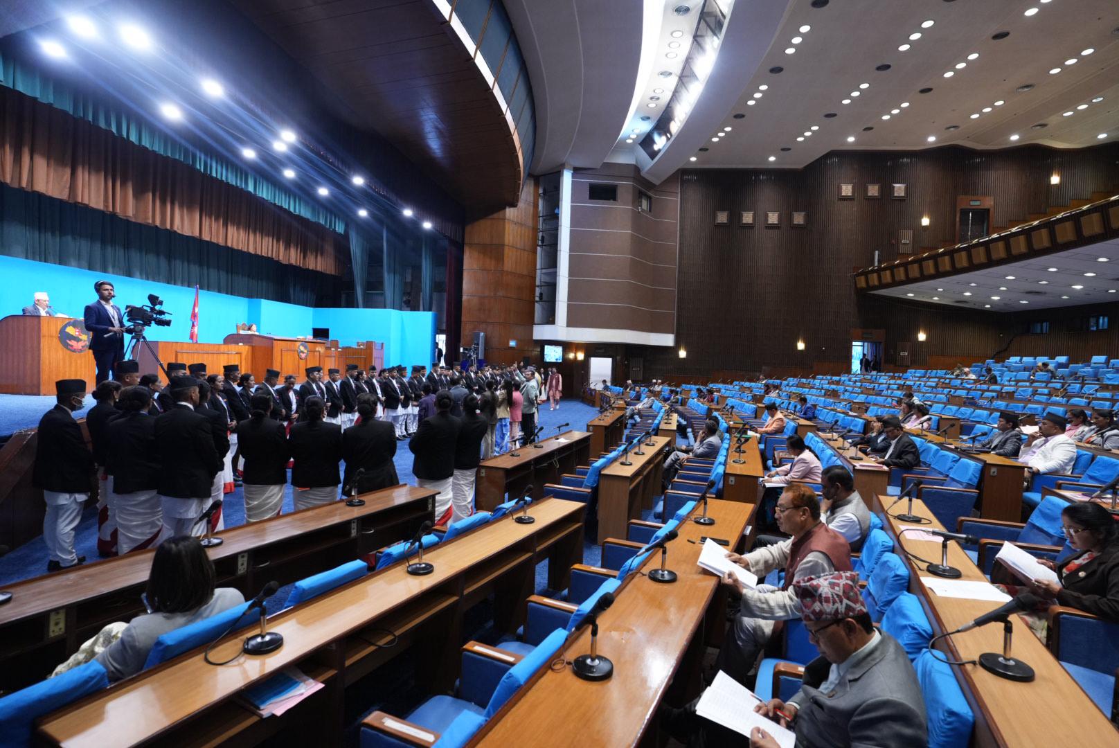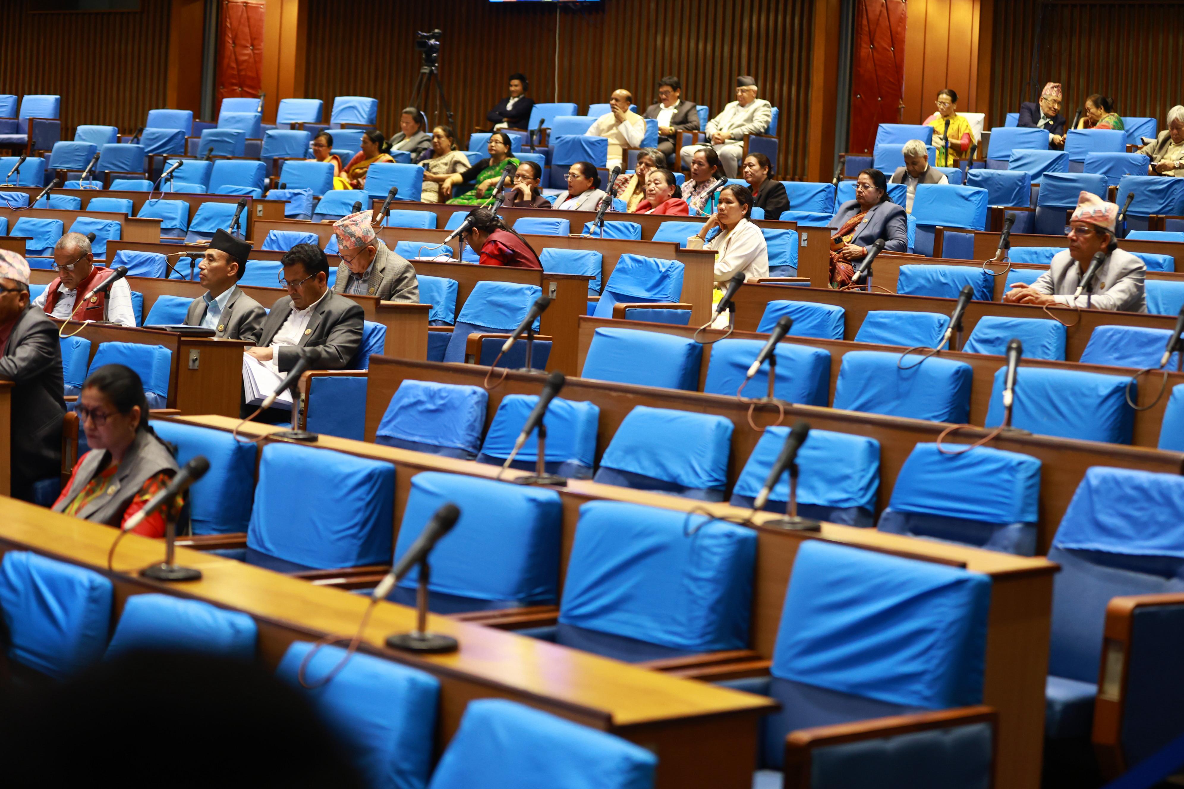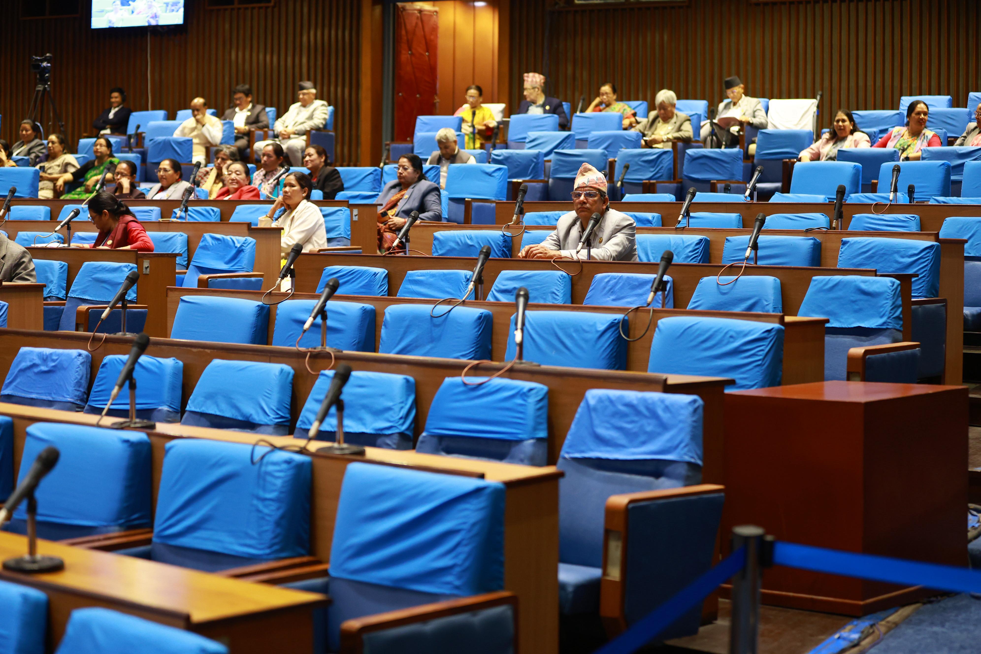 रास्वपाको नाराबाजी, राप्रपाको बैठक बहिष्कार र सत्ता पक्षका सांसदको न्यून उपस्थितिका कारण प्रतिनिधिसभामा अधिकांश कुर्सी खाली देखिएका छन्।