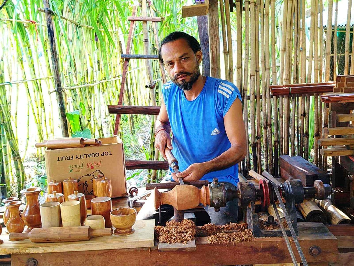 “त्यही पैसाले काष्ठकलाका सामग्री बनाउन औजार र मेसिन तथा सामुदायिक वनबाट काठ खरिद गरेँ, त्यस पछि काष्ठकलाका सामग्री बनाउने र बेच्ने कार्यमा निरन्तर लाग्दै आएँ,” उनले सुनाए।