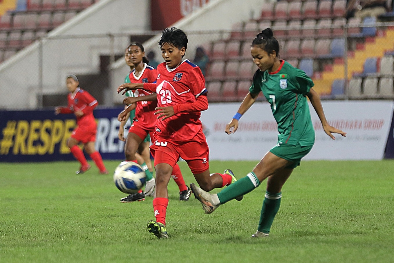 काठमाडौँ– साफ यू२० महिला च्याम्पियनसिप फुटबलको दोस्रो खेलमा नेपाल बांग्लादेशसँग पराजित भएको छ। बांग्लादेशको राजधानी ढाकास्थित बसुन्धारा किङ्स एरेनामा सम्पन्न खेलमा घरेलु टोली बांग्लादेशले नेपाललाई ३–२ गोल अन्तरले पराजित गरेको हो।