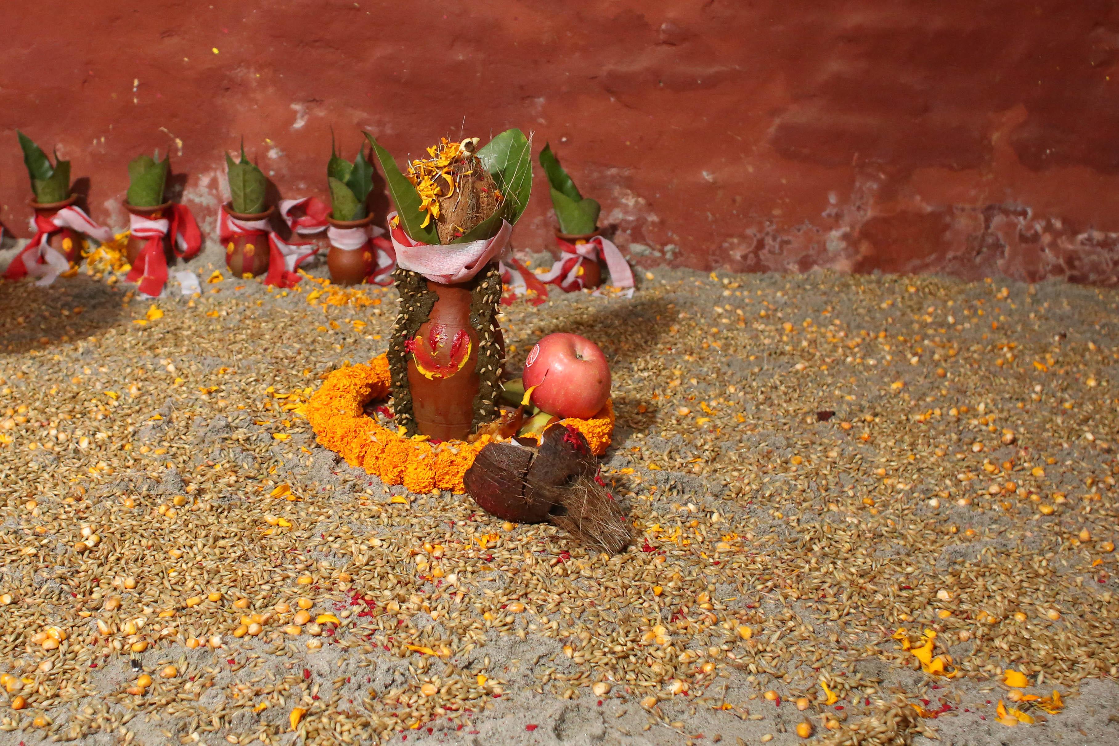 बडादशैँ बिहीबार शुरू भएको छ। पहिलो दिन वैदिक विधिपूर्वक दियो, कलश र गणेश स्थापना गरी घटस्थापना गरिएको छ। काठमाडौँको हनुमानढोका दरबारस्थित दशैँ घरमा पनि विधिवत् रूपमा जमरा राखिएको छ। तस्वीर: नेपाल फोटो लाइब्रेरी