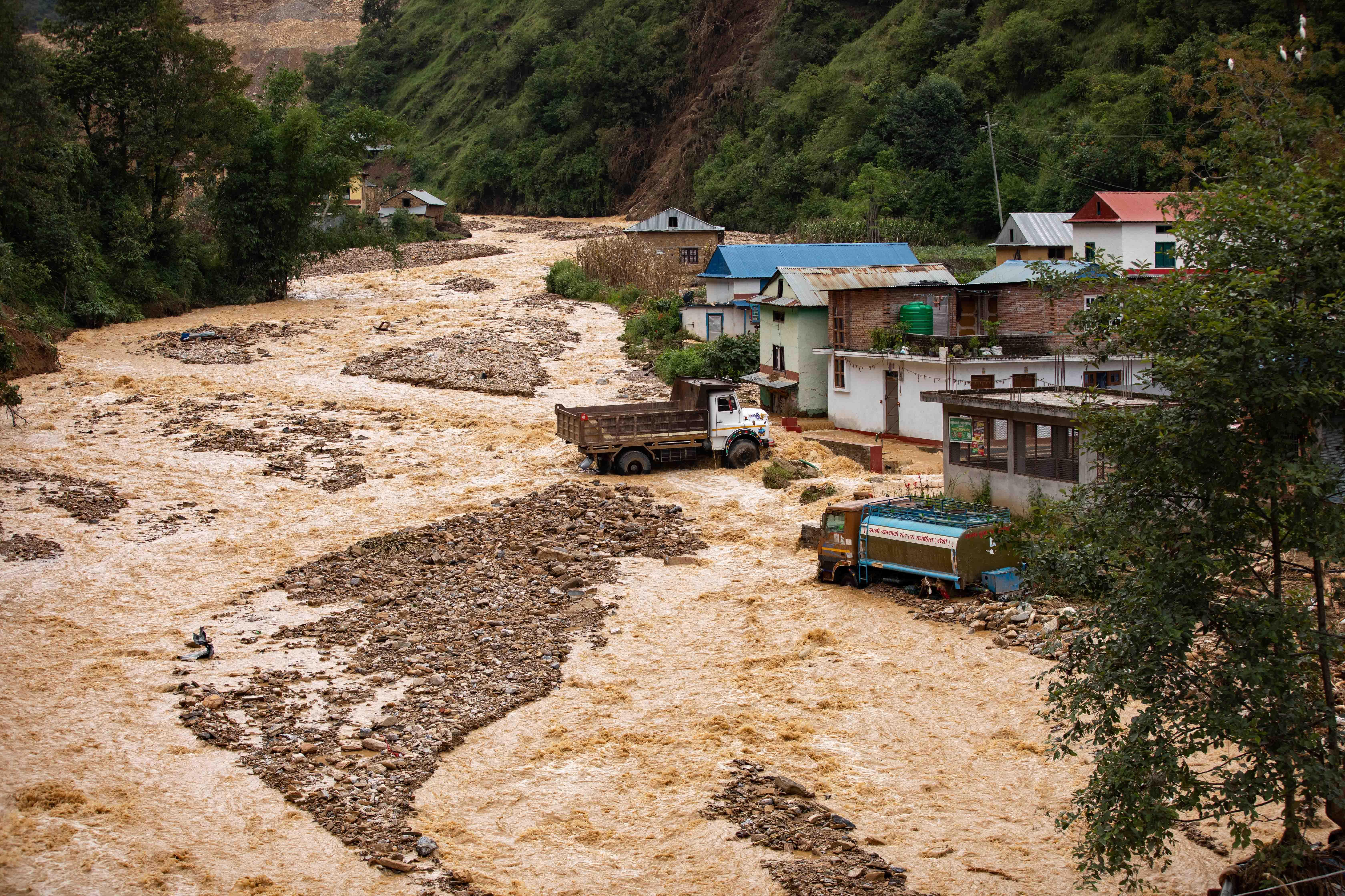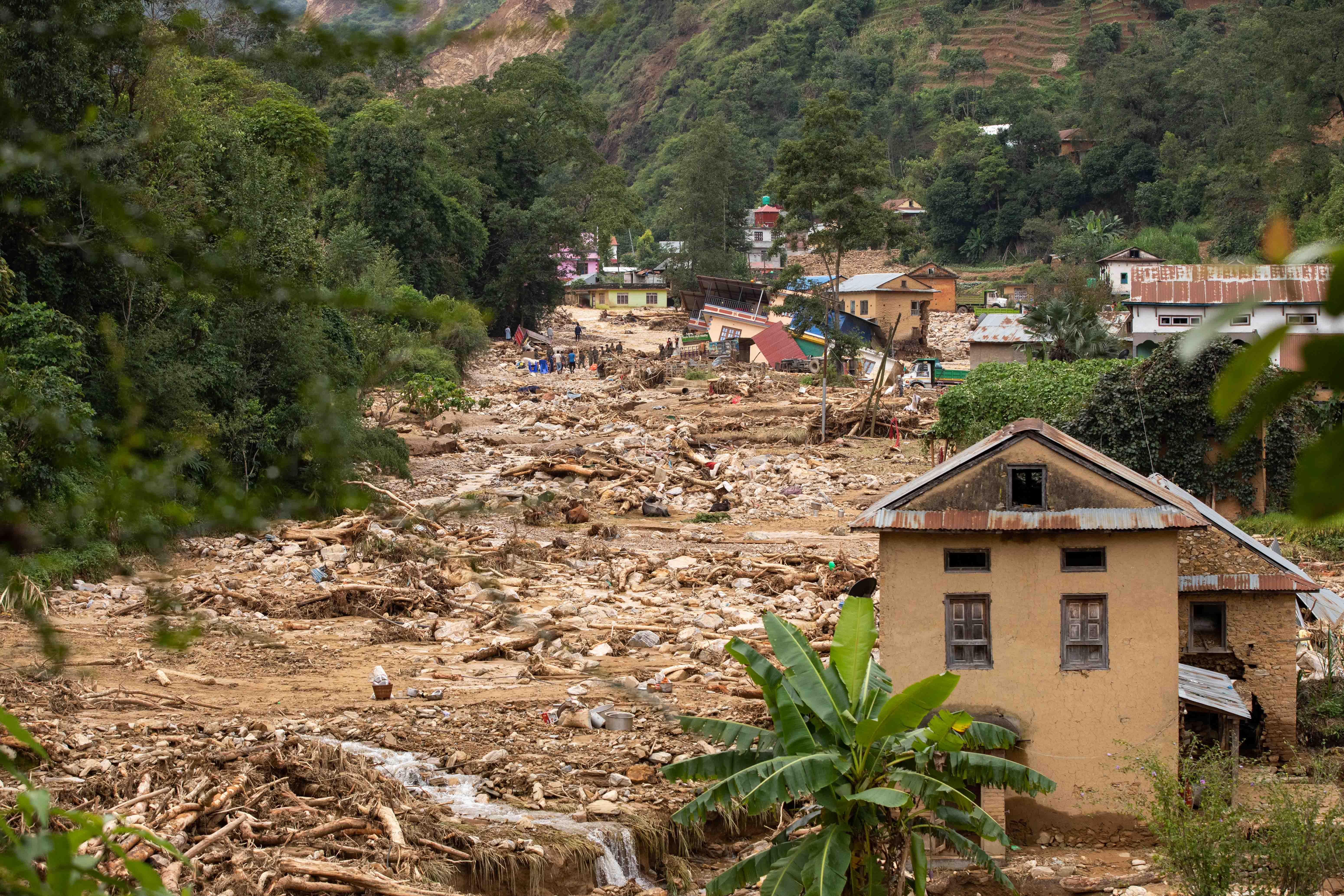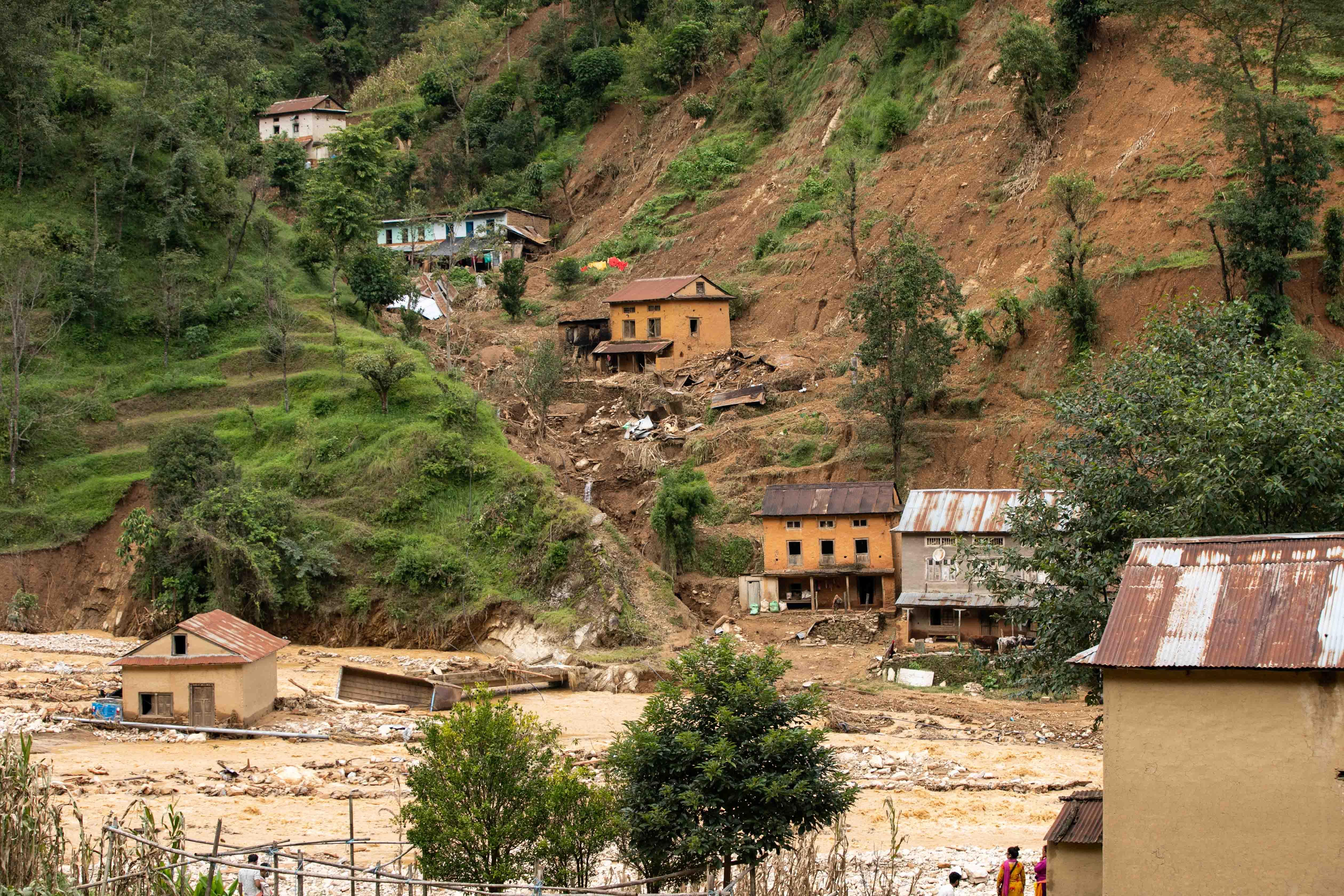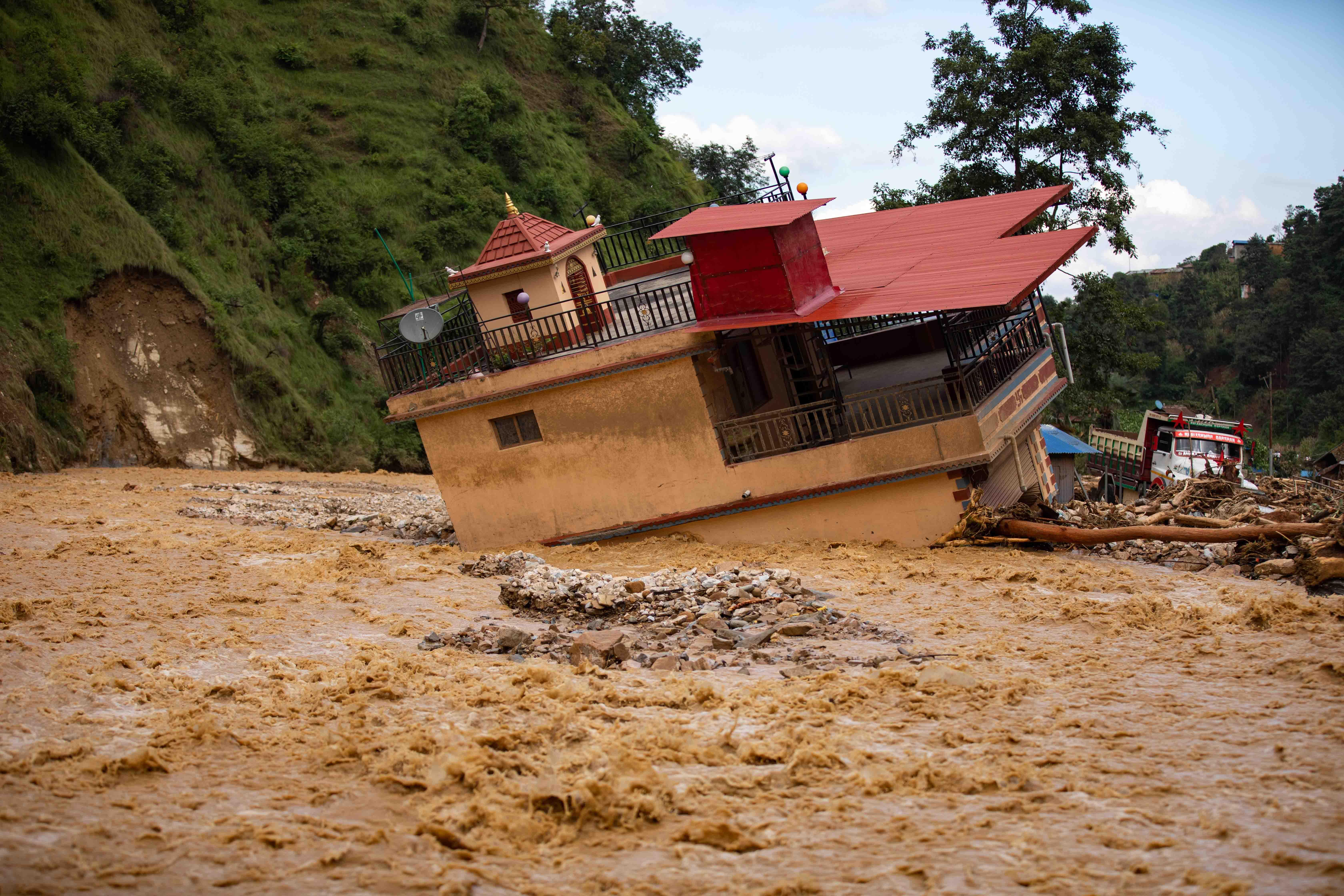 पनौती नगरपालिका– १२ स्थित रोशीखोला किनारमा रहेको भूमेडाँडाबस्ती बाढीले खण्डहर बनेको छ। अधिकांश घर बगरमा परिणत भएका छन्। बाँकी घर पनि बस्न नमिल्ने अवस्थामा छन्। खेतबारीमा लगाइएका अन्नबाली बाढीले सखाप पारेको छ। बाढी आएको एक हप्ता भइसक्दा पनि राज्य संयन्त्र नपुगेको स्थानीयको गुनासो छ। तस्वीर: नेपाल फोटो लाइब्रेरी \r\n\r\n
