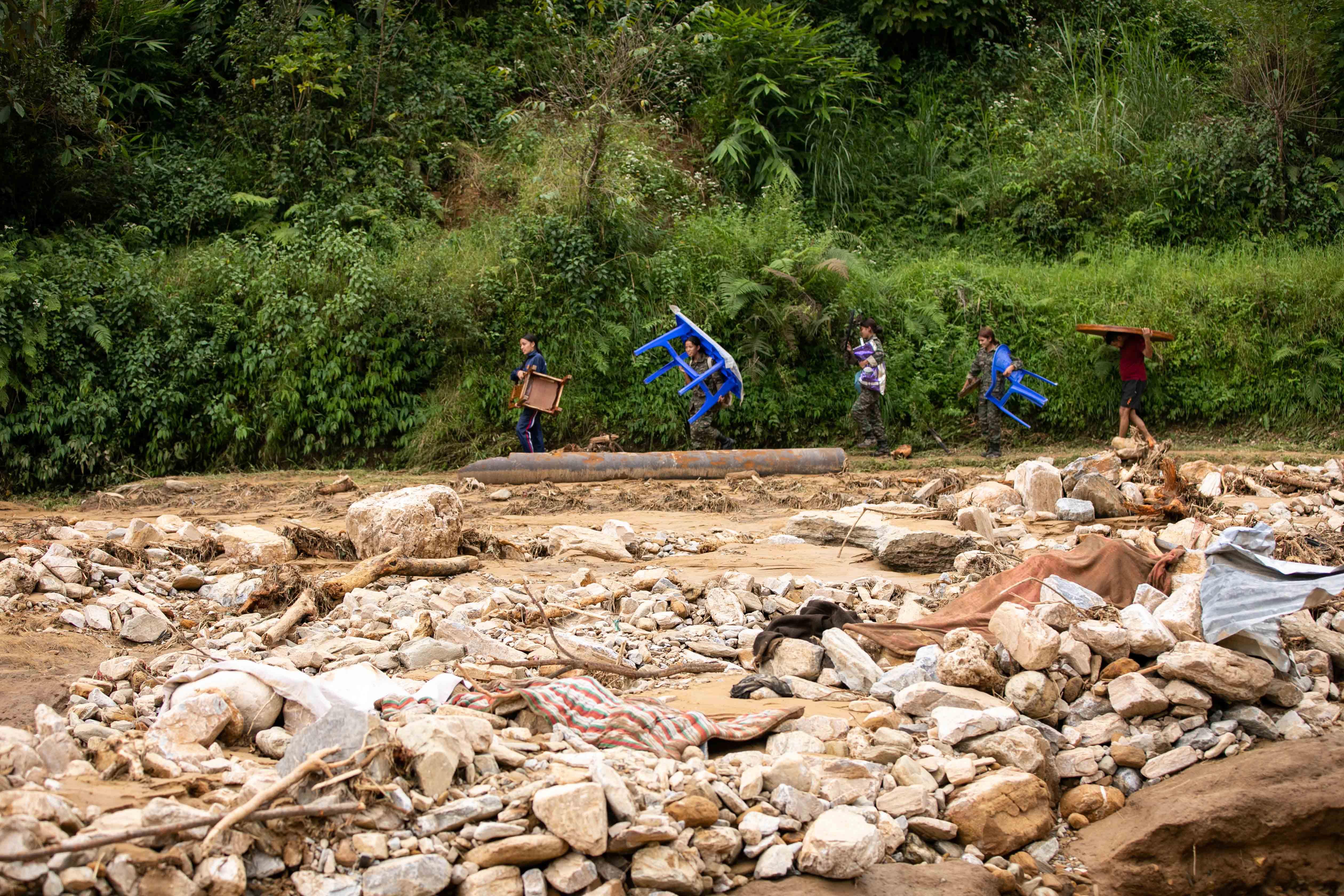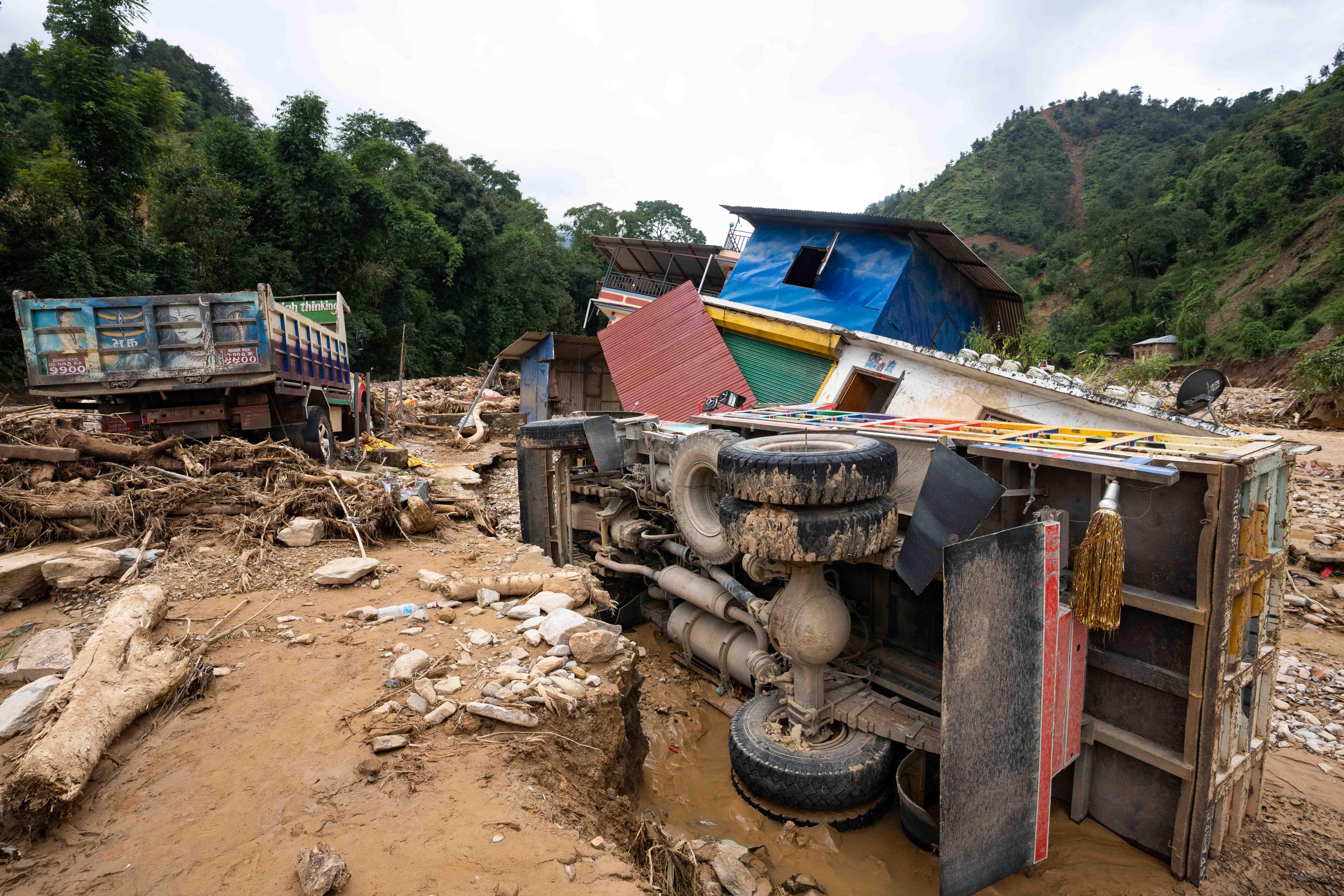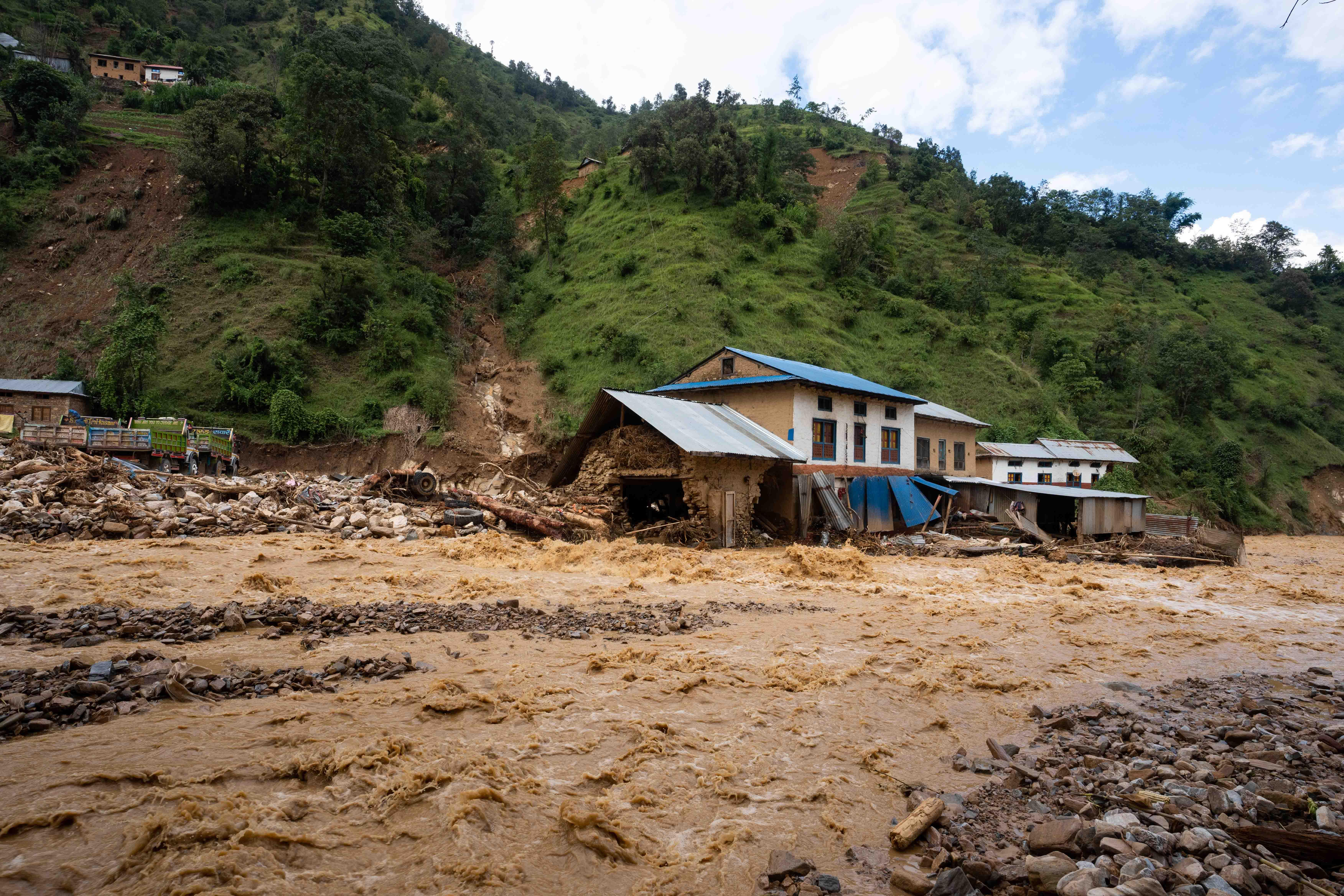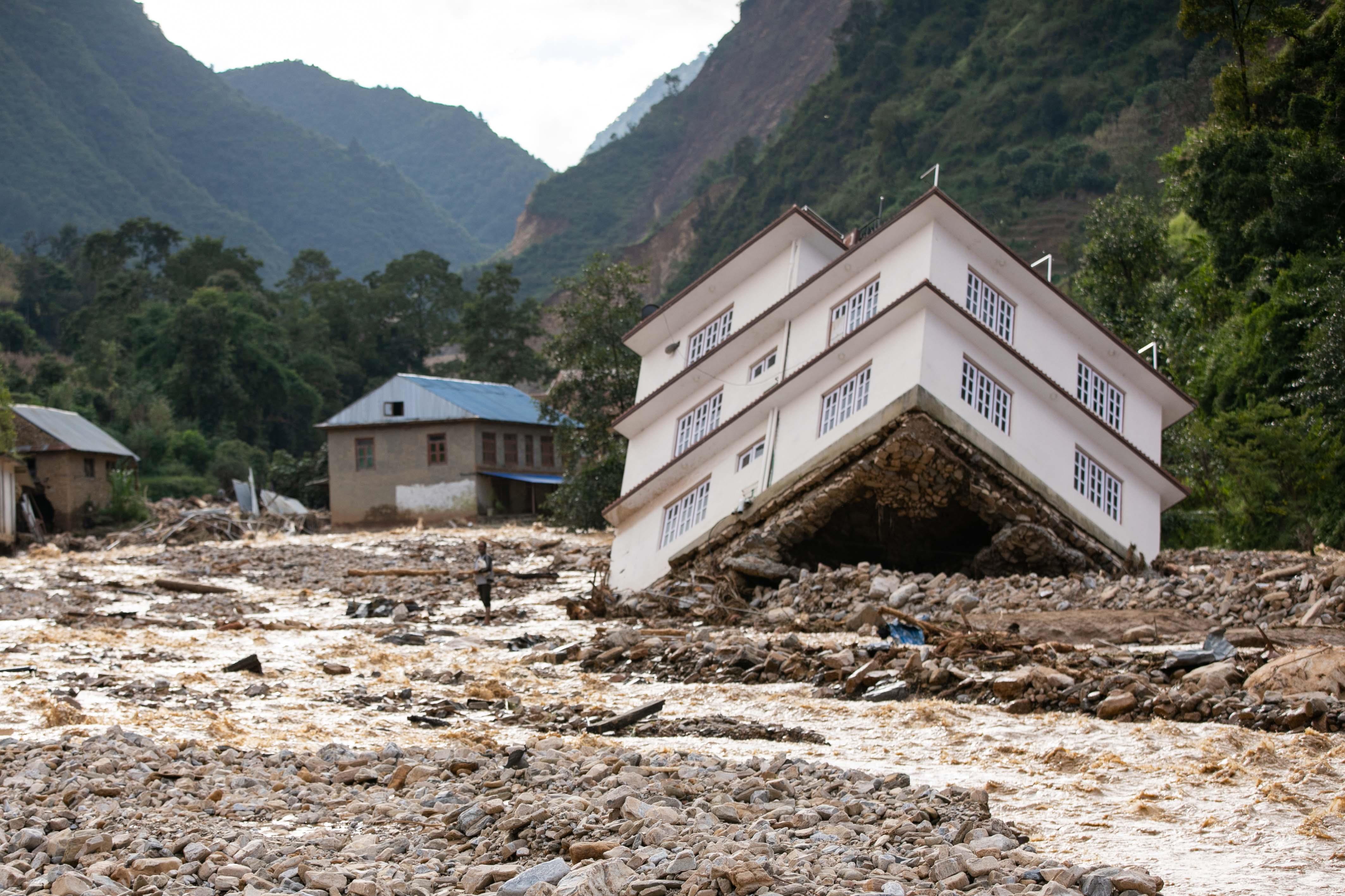 पनौती नगरपालिका– १२ स्थित रोशीखोला किनारमा रहेको भूमेडाँडाबस्ती बाढीले खण्डहर बनेको छ। अधिकांश घर बगरमा परिणत भएका छन्। बाँकी घर पनि बस्न नमिल्ने अवस्थामा छन्। खेतबारीमा लगाइएका अन्नबाली बाढीले सखाप पारेको छ। बाढी आएको एक हप्ता भइसक्दा पनि राज्य संयन्त्र नपुगेको स्थानीयको गुनासो छ। तस्वीर: नेपाल फोटो लाइब्रेरी \r\n\r\n