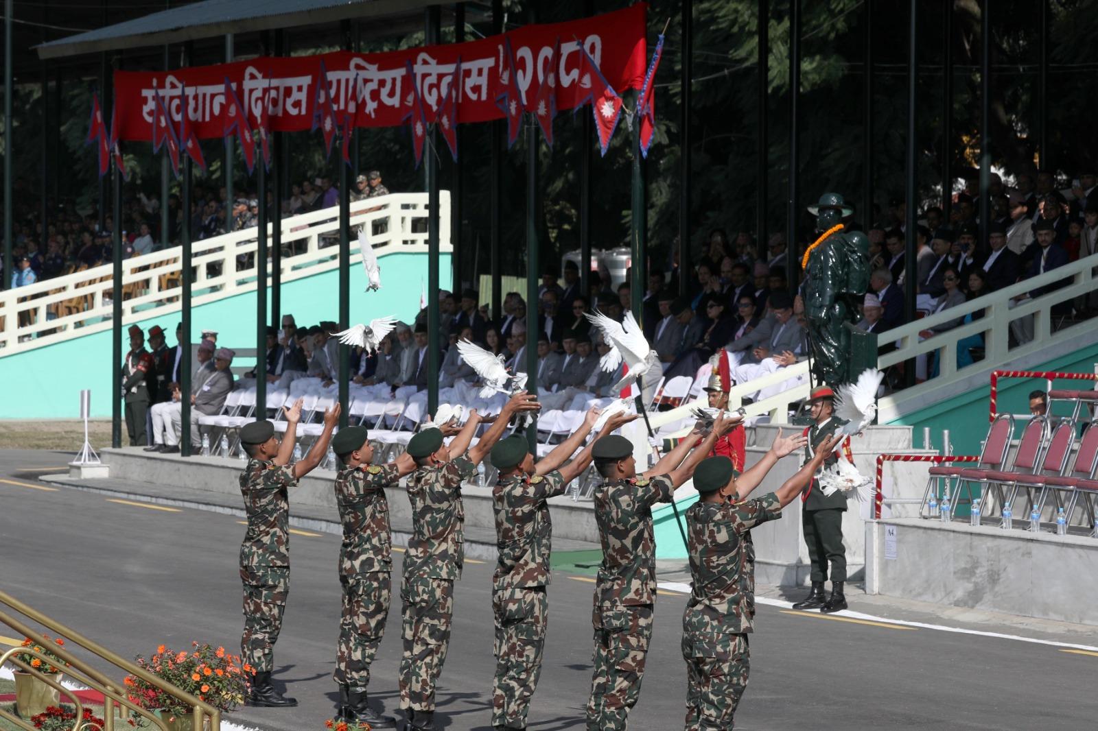 नेपालको संविधान जारी भएको दिनको खुशीयालीमा बिहीबार संविधान दिवस मनाइँदै छ। दिवसका अवसरमा देशभर तथा विदेशस्थित नेपाली नियोगहरूमा विभिन्न कार्यक्रम आयोजना गरिएका छन् । काठमाडौँस्थित सैनिक मञ्च टुँडिखेलमा आयोजना गरिएको संविधान दिवस मूल समारोहमा राष्ट्रपति रामचन्द्र पौडेल प्रमुख अतिथिका रूपमा सहभागी भएका छन्। त्यस अवसरमा संविधान दिवस मूल समारोह समितिका अध्यक्ष एवं प्रधानमन्त्री केपी शर्मा ओलीले सम्बोधन गरेका छन्। साँझ राष्ट्रपति पौडेलले राष्ट्रपति भवनमा स्वागत समारोह आयोजना गर्ने कार्यक्रम छ। नेपालको संविधान २०७२ असोज ३ गते जारी भएको थियो। यो नेपालको सातौँ संविधान हो।