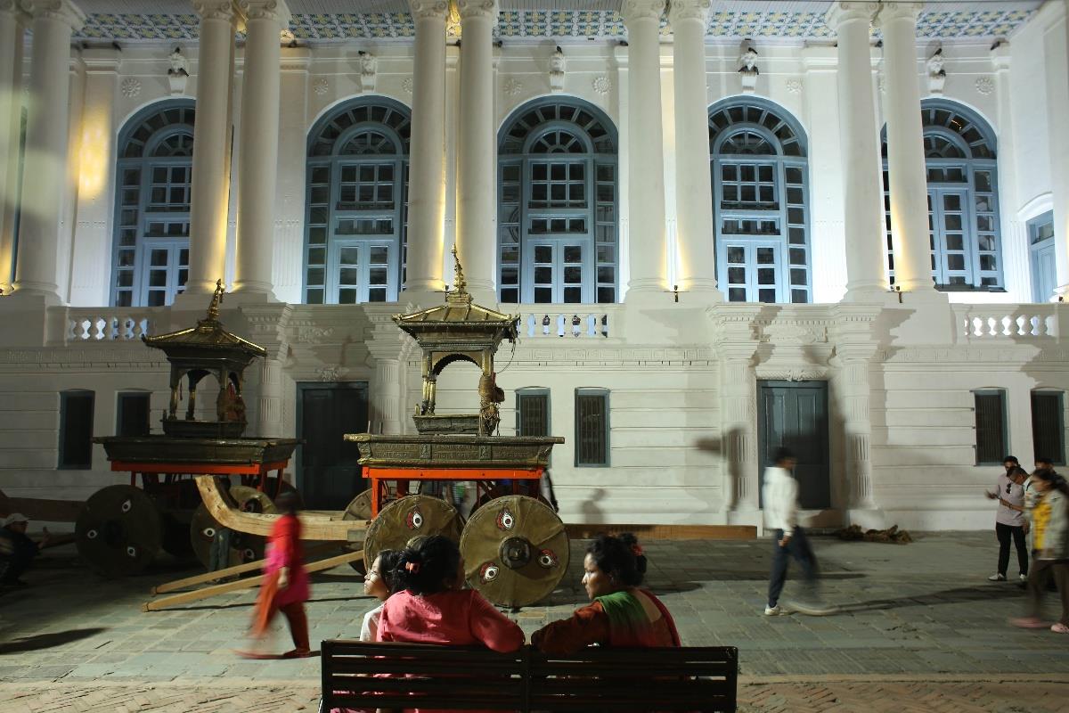 हनुमानढोका दरबार क्षेत्र जात्रामय भएको छ। आइतबार काल भैरवको मूर्ति अगाडि लिंगो ठड्याइएपछि काठमाडौँ उपत्यकामा इन्द्रजात्रा शुरू भएको हो। प्रत्येक वर्ष भाद्र शुक्ल द्वादशीका दिन इन्द्रध्वजोत्थान गर्ने परम्परा छ। आठ दिनसम्म राजधानीमा विभिन्न कार्यक्रम गरी इन्द्रजात्रा पर्व मनाइन्छ। तस्वीर : नेपाल फोटो लाइब्रेरी।