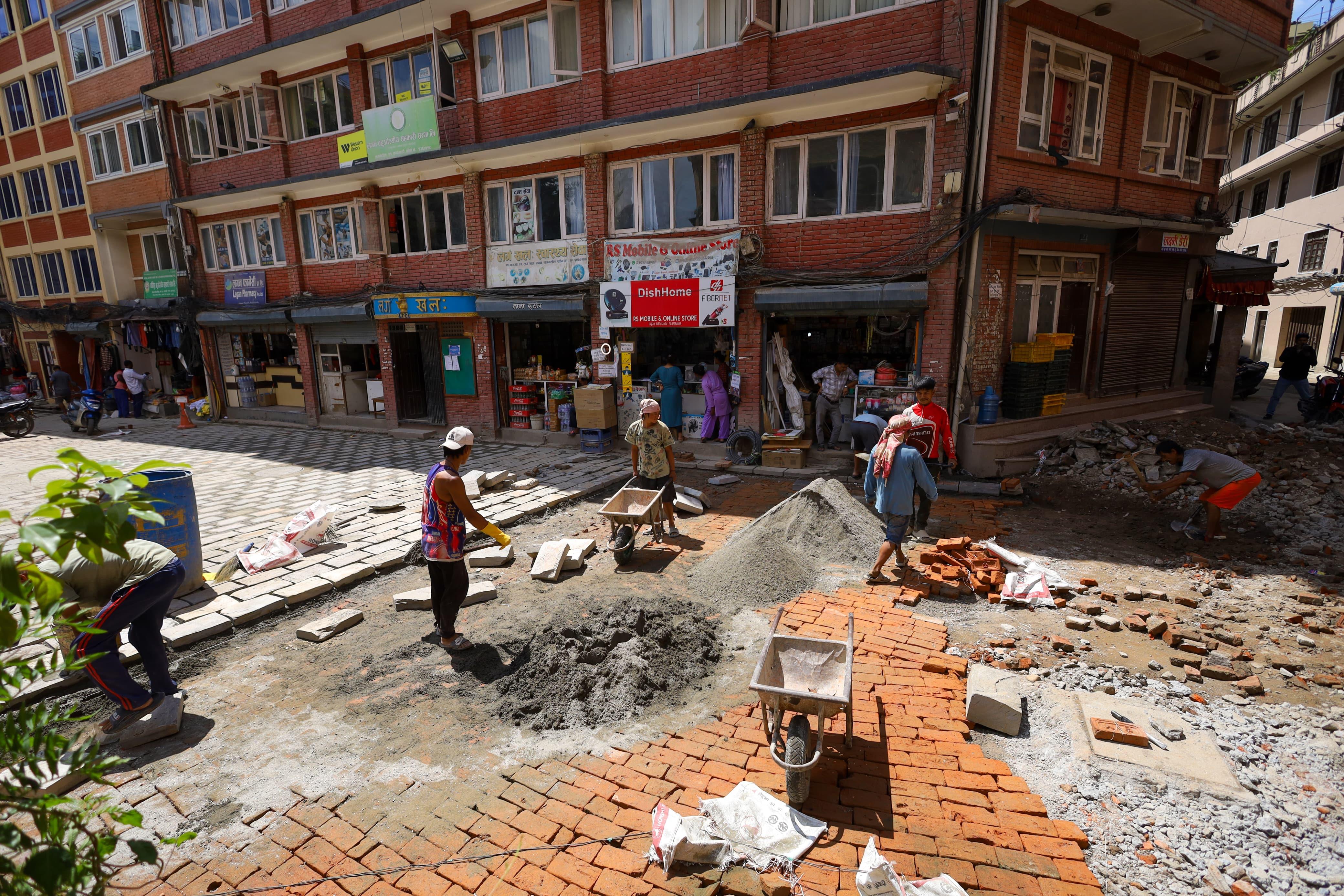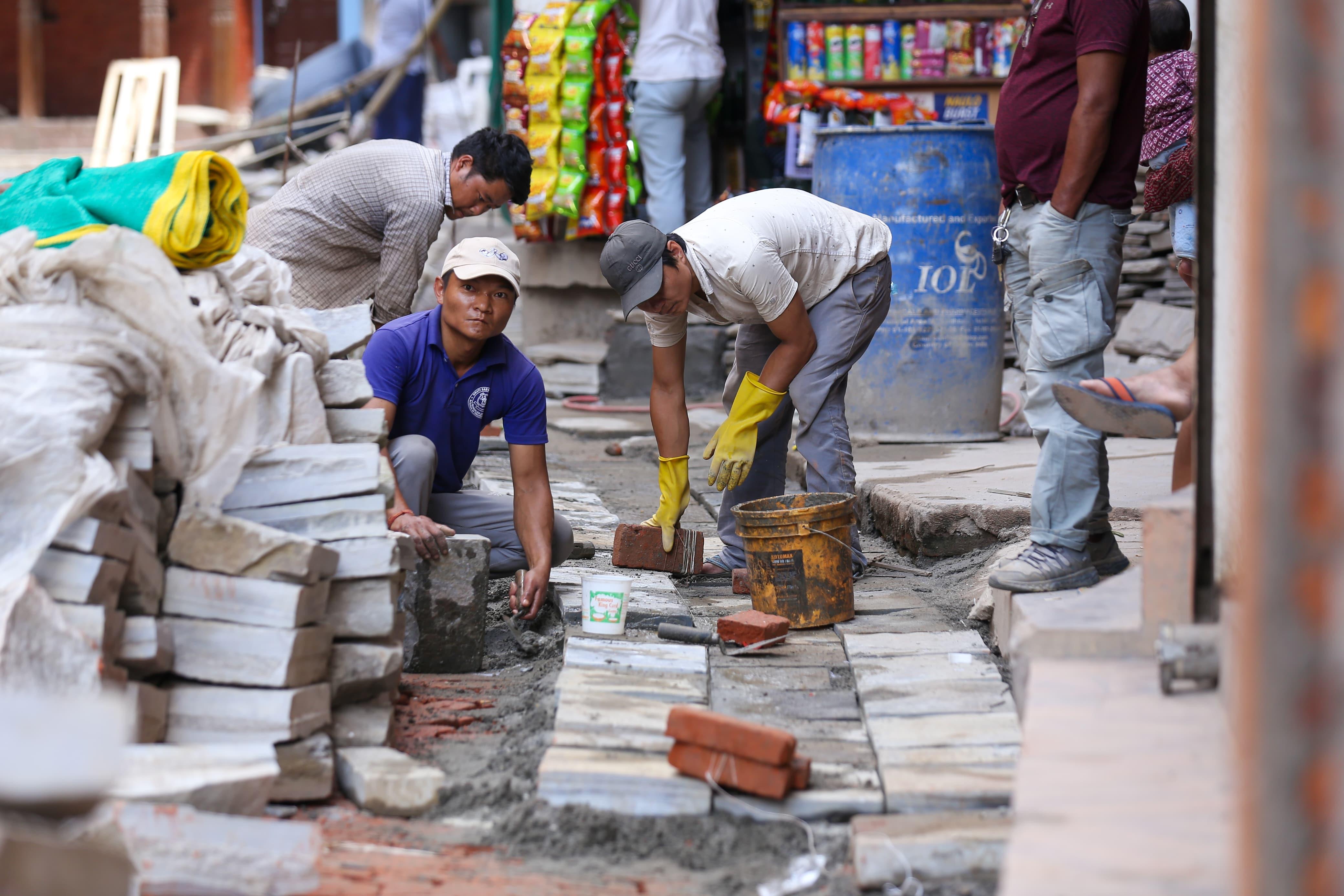 इन्द्रजात्राको तयारी शुरू भएसँगै काठमाडौँका कोर क्षेत्रका सडक मर्मत धमाधम भइरहेको छ। बाटोका खाल्डो पुर्ने र मिलाउने काम भइरहेको हो। हरेक वर्ष इन्द्रजात्राको पूर्वसन्ध्यामा काठमाडौँ महानगरले सडक गर्दै आएको छ। तस्वीर: नेपाल फोटो लाइब्रेरी