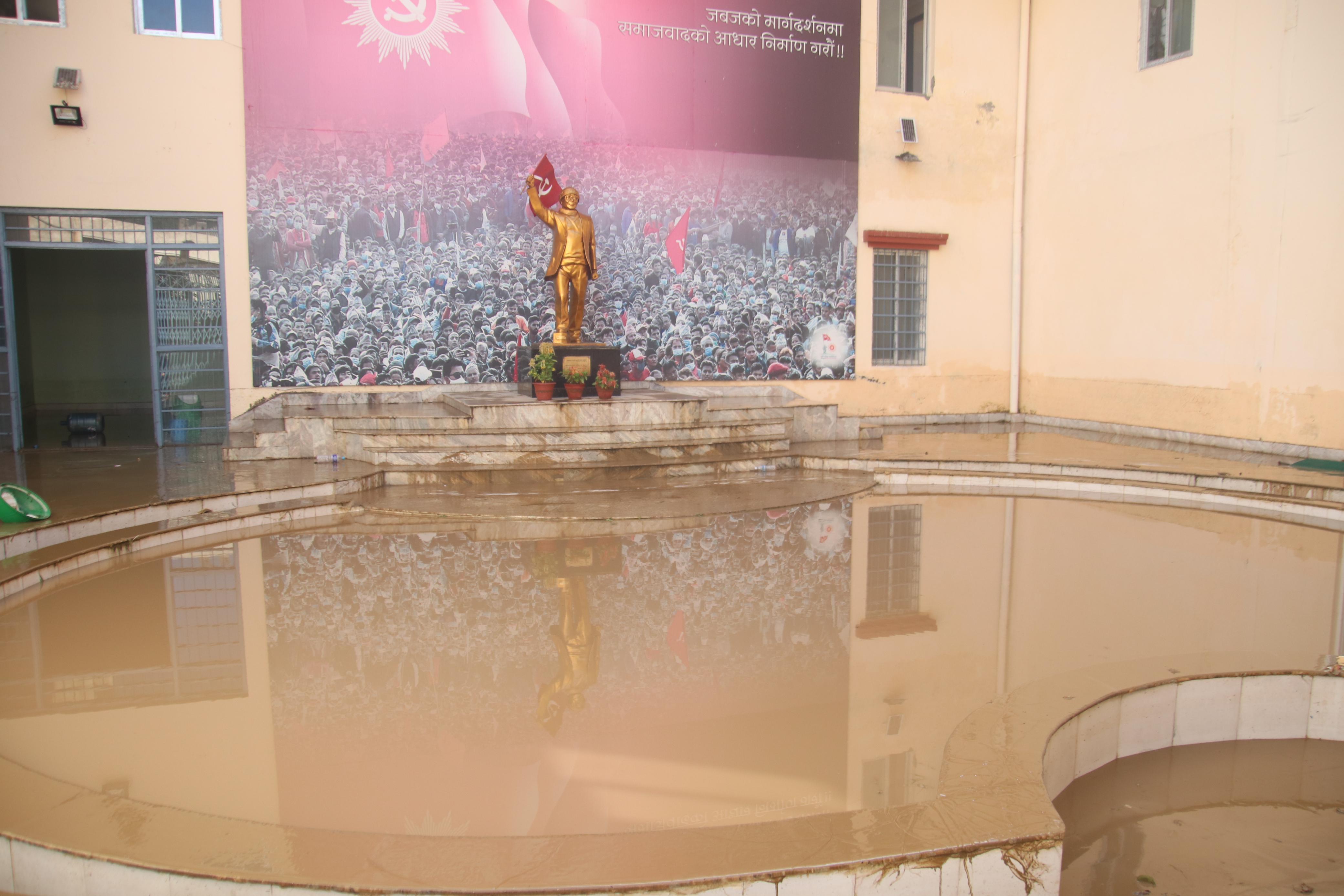 ललितपुरको च्यासलस्थित नेकपा एमालेको केन्द्रीय कार्यालयमा बाढी पसेको छ। अविरल वर्षापछि उर्लिएको बागमतीको बाढी पस्दा कार्यालय परिसर जलमग्न भएको छ। बुधबार बिहान च्यासलस्थित बागमतीको पुलमाथिबाट बागमतीको पानी बगेको थियो। बाढीले च्यासल फुटबल मैदान, अस्थायी प्रहरी पोस्ट र पार्टी प्यालेस पनि डुबाएको छ।