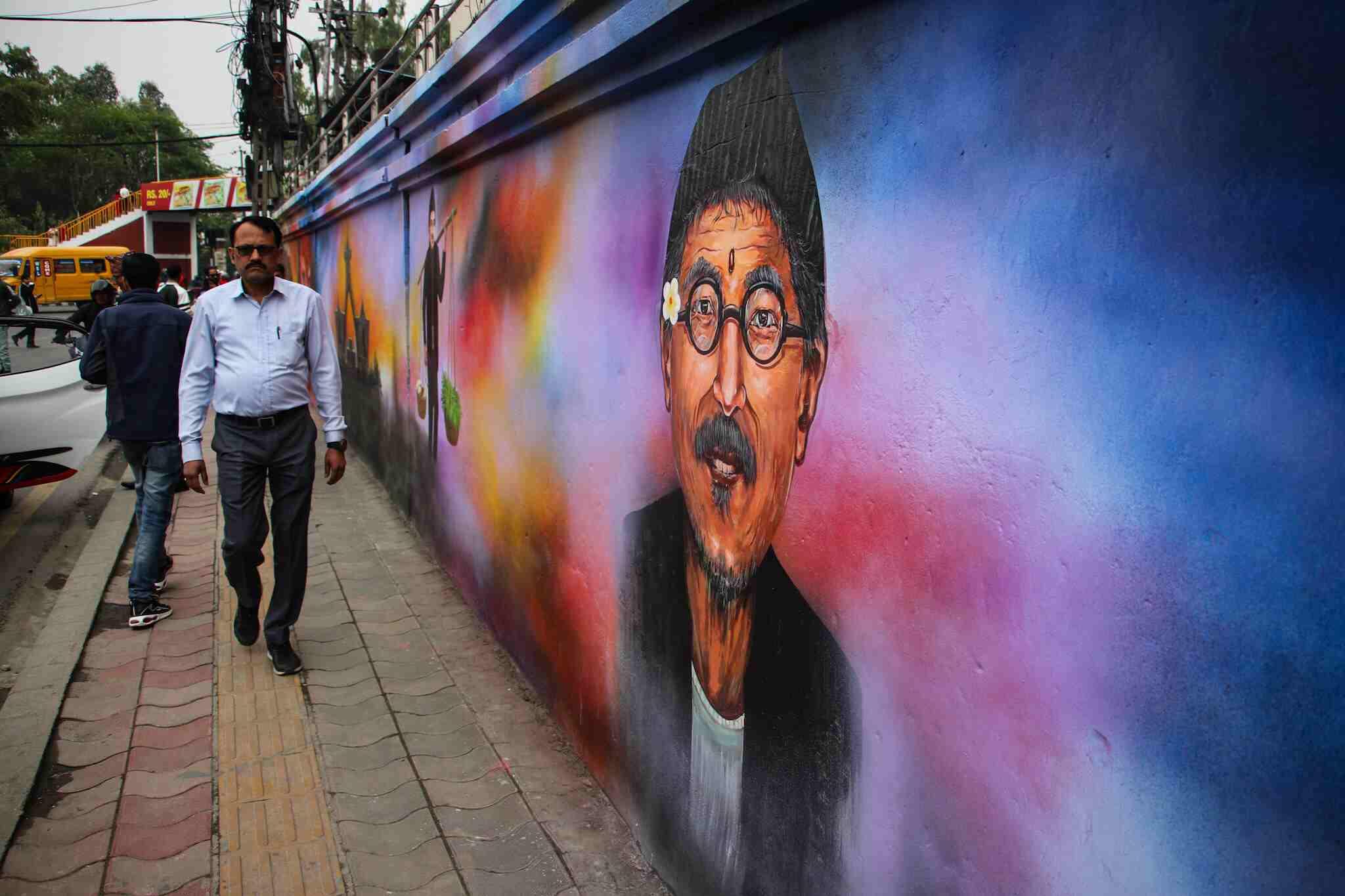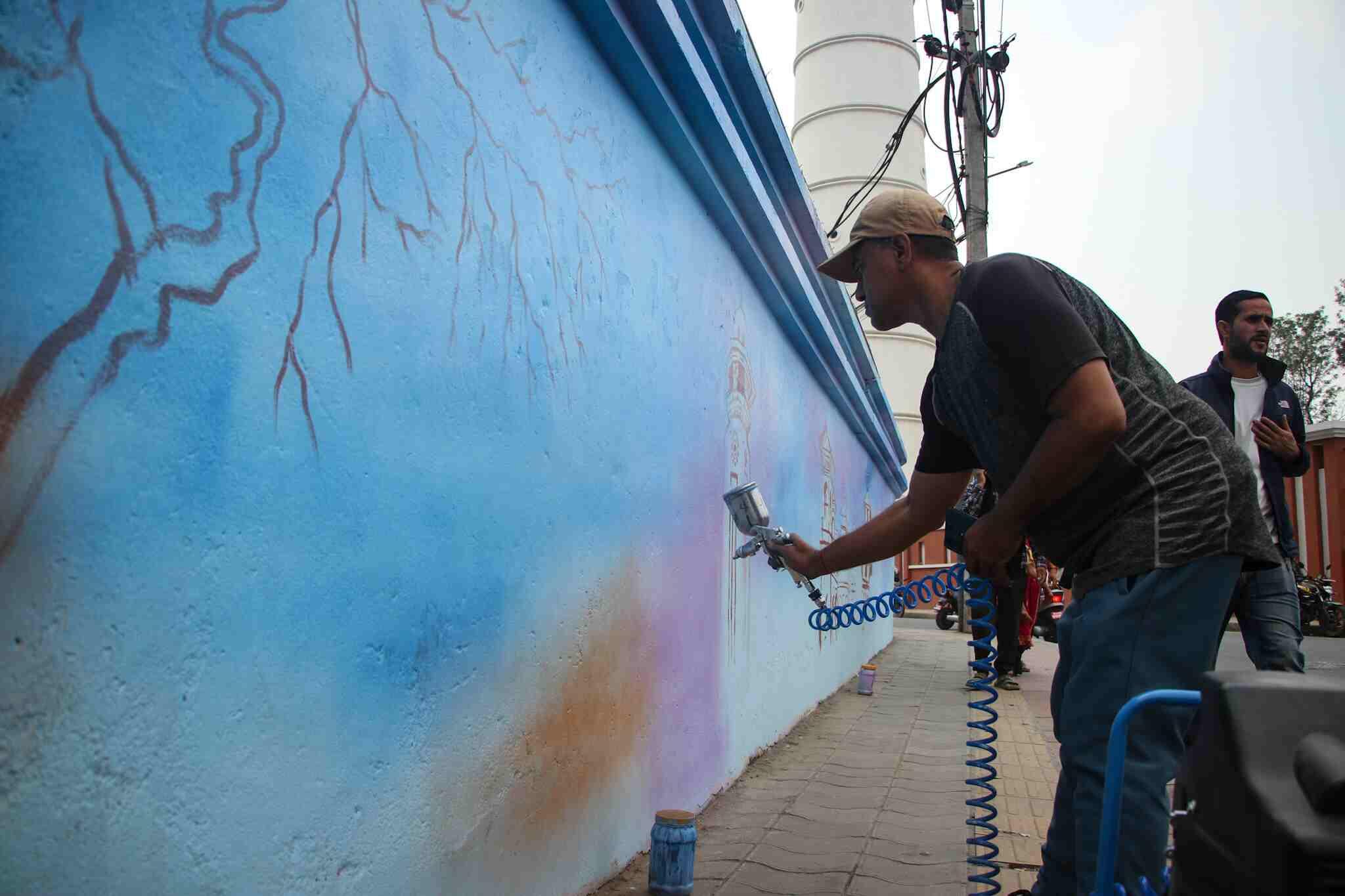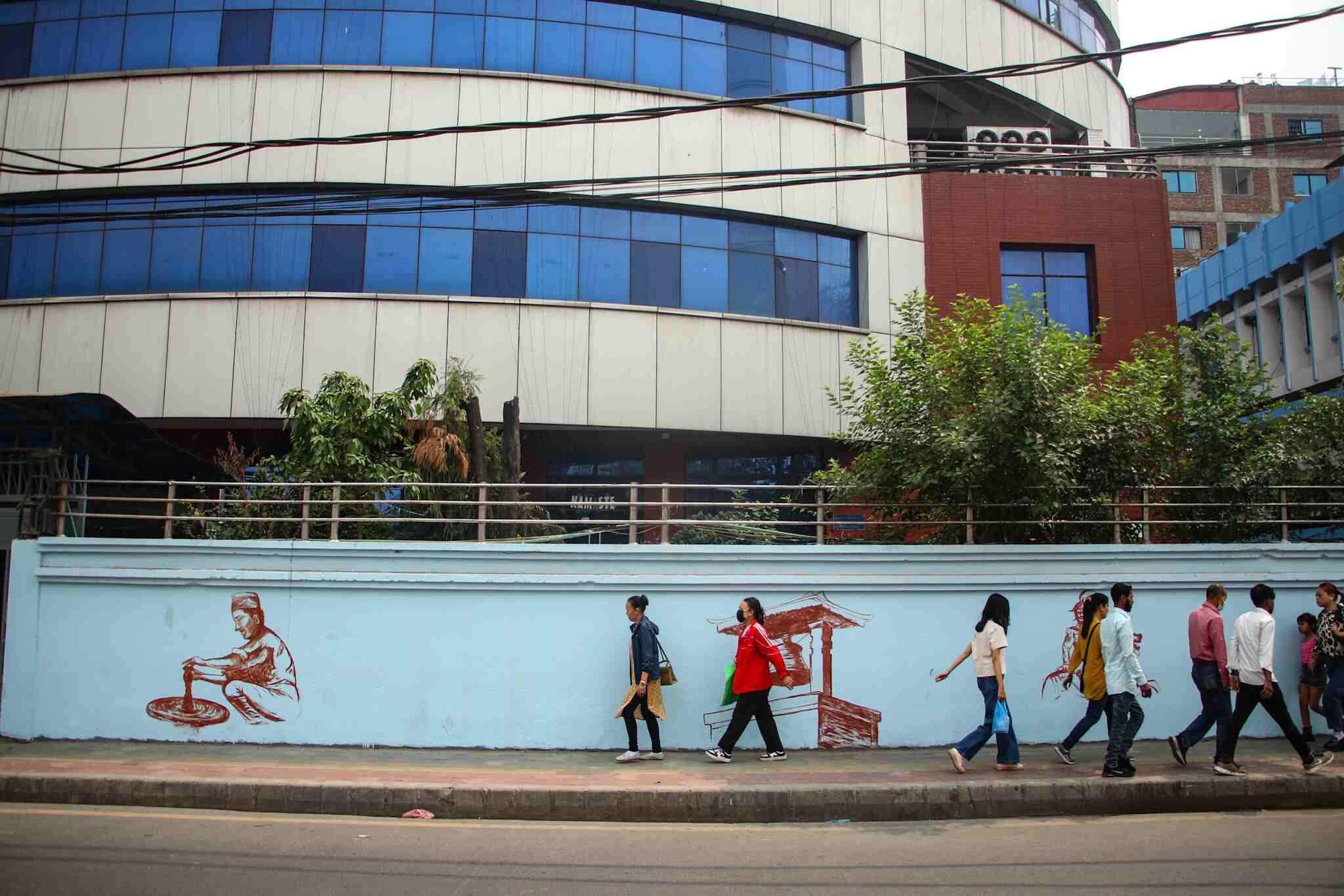 काठमाडौँ महानगरपालिकाले ‘वाल आर्ट’मार्फत खाली भित्ताहरू रङ्गाउन शुरू गरेको छ। फोहोर फल्ने, पोस्टर ठास्ने, अनावश्यक रूपमा लेख्ने गर्दा कुरुप देखिएपछि खाली भित्तामा काठमाडौँ महानगरले विभिन्न कला संस्कृति झल्किने गरी रङ रोगन गरेको हो। शुरूआती चरणमा सुन्धारामा रहेको नेपाल टेलिकमको भवनका भित्तामा रङ रोगन गरिएको हो। सुन्धारापछि त्रिपुरेश्वर ओरालो, प्रदर्शनी मार्गमा रहेका भित्ता, विमानस्थल, बबरमहलमा ‘वाल आर्ट’ गरिने महानगरले जनाएको छ। तस्वीर : नेपाल फोटो लाइब्रेरी