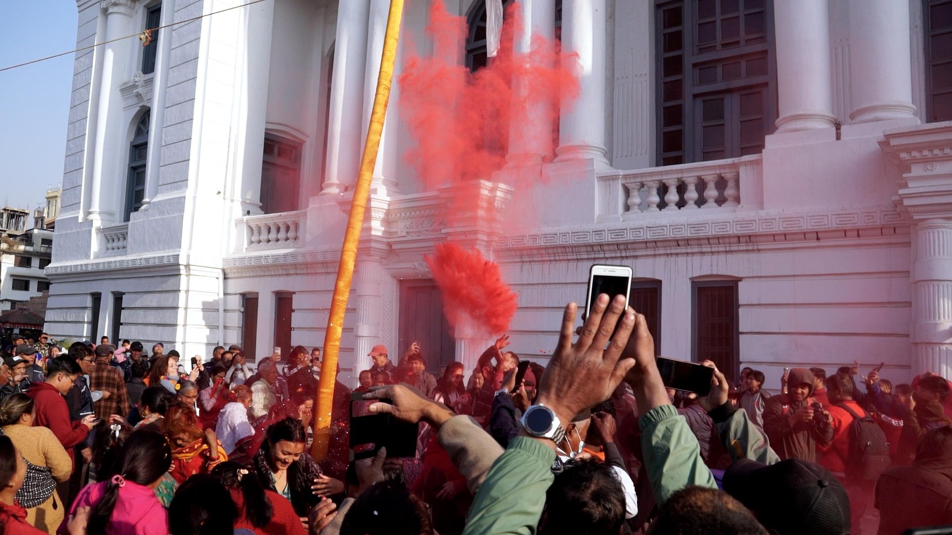काठमाडौँको वसन्तपुरमा रंगीचंगी ध्वजाले सजाइएको तीनतले चीर ठड्याइएको छ। यससँगै रंगहरूको पर्व होली शुरू भएको छ।
