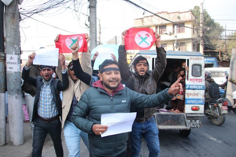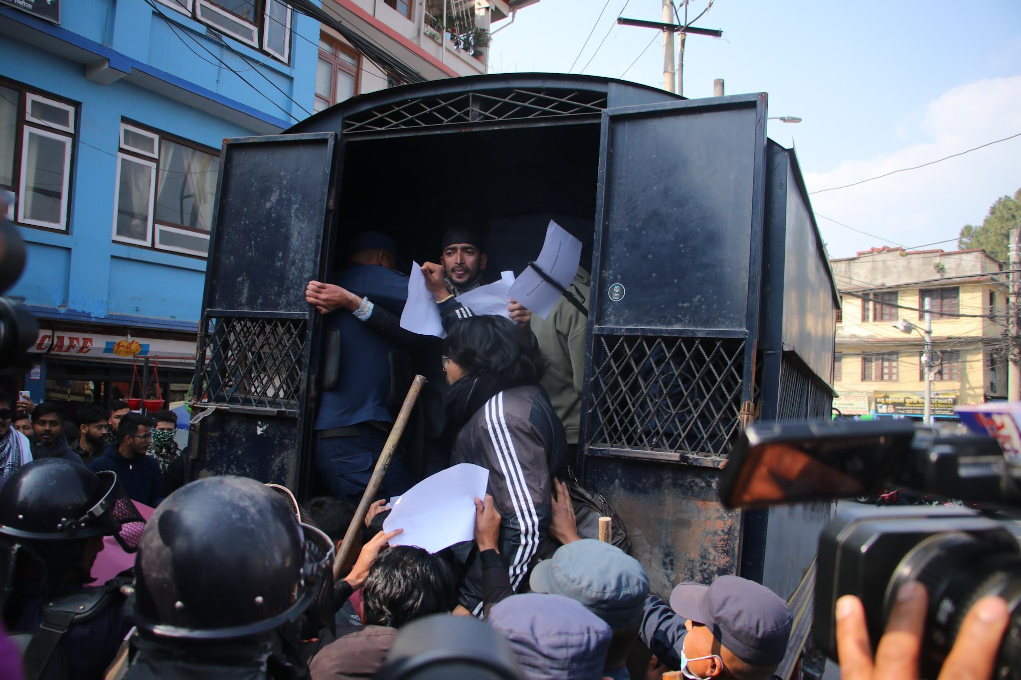 काठमाडौँको माइतीघरमा लगाइएको निषेधाज्ञा हटाउन माग गर्दै नेपाल विद्यार्थी संघका कार्यकर्ताले प्रदर्शन गरेका छन्। सो क्रममा १७ जनालाई प्रहरीले पक्राउ गरेको छ। निषेधित क्षेत्रमा प्रदर्शन गर्न खोजेपछि नियन्त्रणमा लिइएको प्रहरी परिसर काठमाडौँका एसपी कुमोध ढुंगेलले बताए। माइतीघरलाई काठमाडौँ प्रशासनले मंसिरदेखि निषेधित क्षेत्र तोकेको छ।