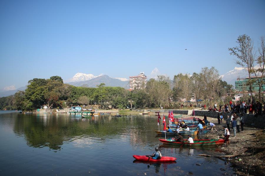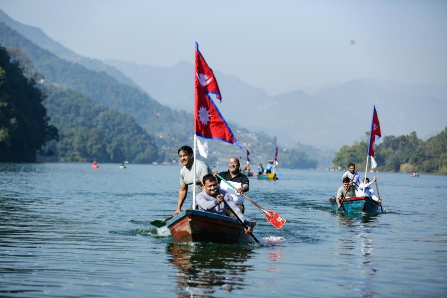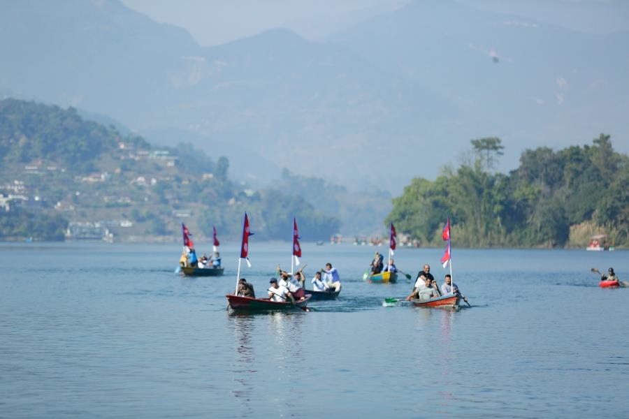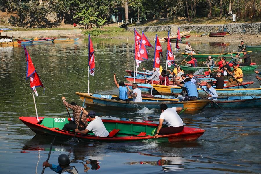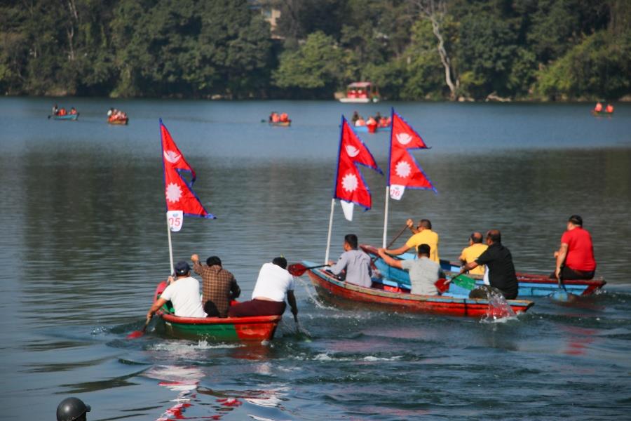 पोखरामा जारी २५औँ पोखरा सडक महोत्सवमा तेस्रो दिन डुंगा खियाउने प्रतियोगिता सम्पन्न भएको छ। रेस्टुरेन्ट तथा बार एसोसिएसन नेपाल रेवानको आयोजनामा भएको प्रतियोगिताको खुल्लातर्फको प्रतिस्पर्धामा स्विमङपुल घाट ‘ए’ विजयी भयो भने गौरीघाट तथा बाराही घाट क्रमशः दोस्रो र तेस्रो भए। विजयी टोलीले २० हजार नगद पुरस्कार जित्यो भने दोस्रो १० हजार र तेस्रो हुनेले ५ हजार नगद पुरस्कार प्राप्त गरे। यसैगरी संस्थागत तर्फका प्रतिस्पर्धामा टान गण्डकी प्रथम भयो भने रेवान पोखरा दोस्रो हुँदा नेपाल टुरिजम भ्यान एसोसिएसनले तेस्रो स्थान हासिल गर्यो।सडकमै खाऔँ सडकमै रमाऔँ भन्ने नारासहितको आयोजित महोत्सवमा आन्तरिक तथा बाह्य पर्यटकको सहभागिता छ। मनिष अर्याल/नेपाल फोटो लाइब्रेरी