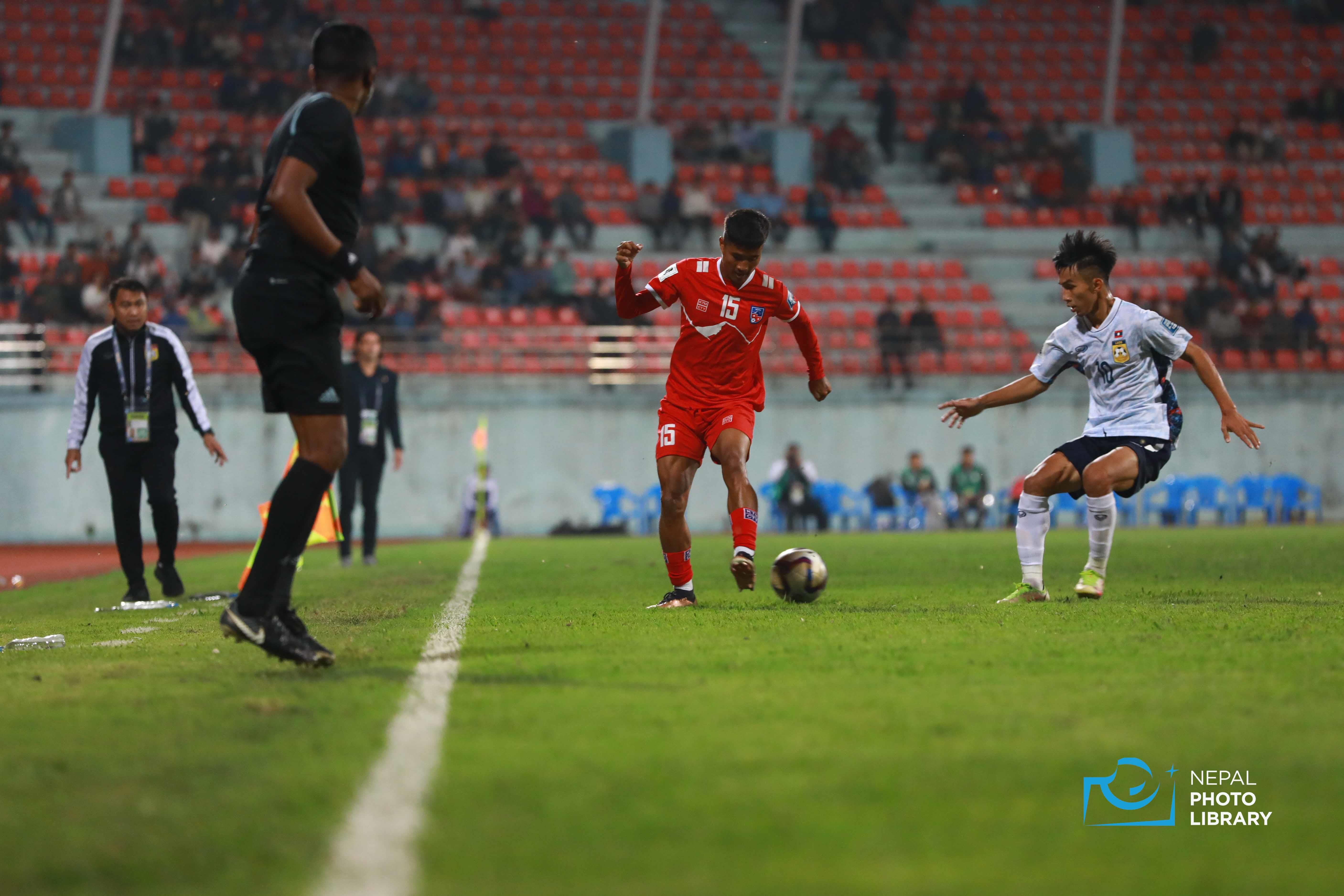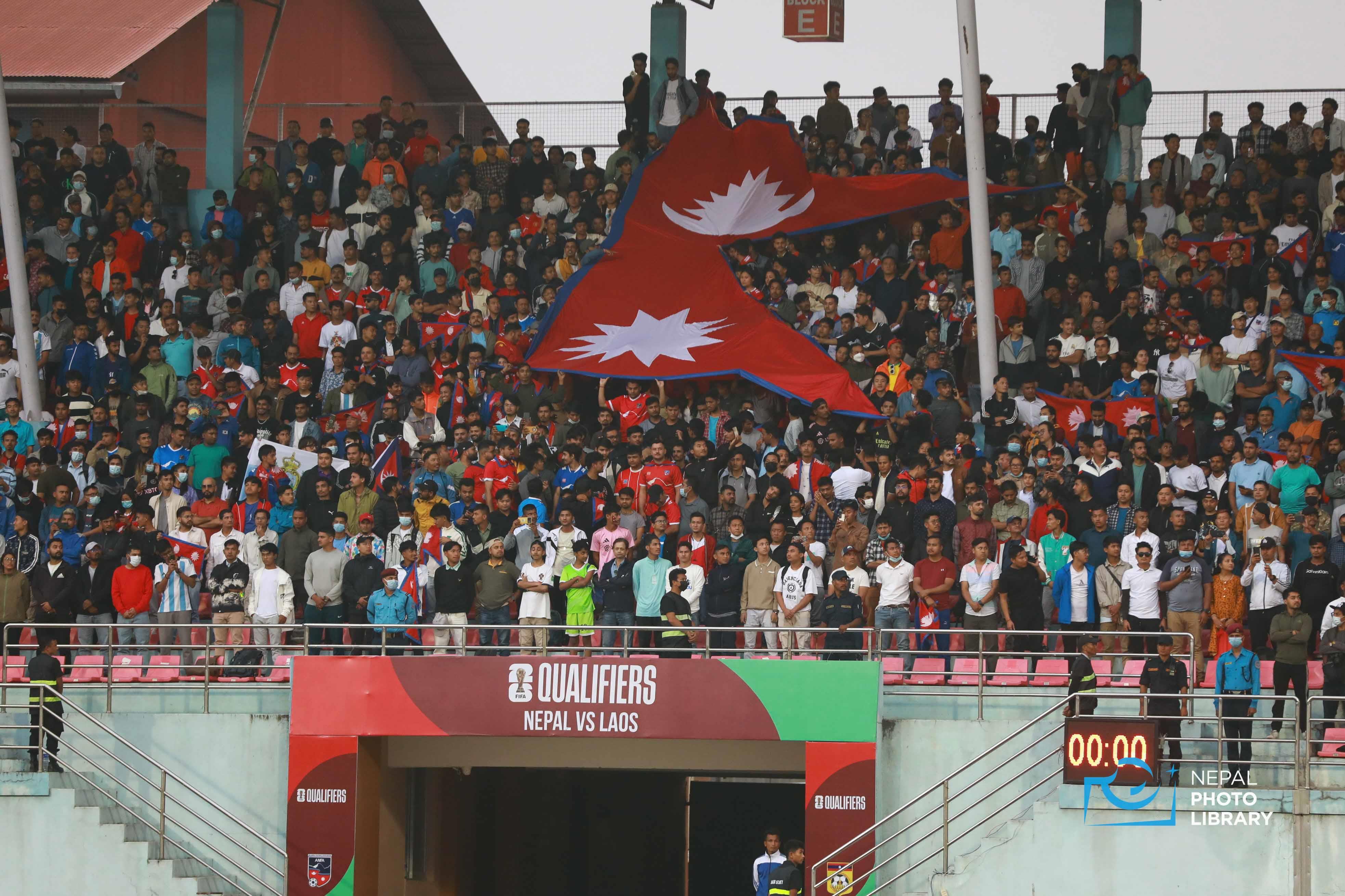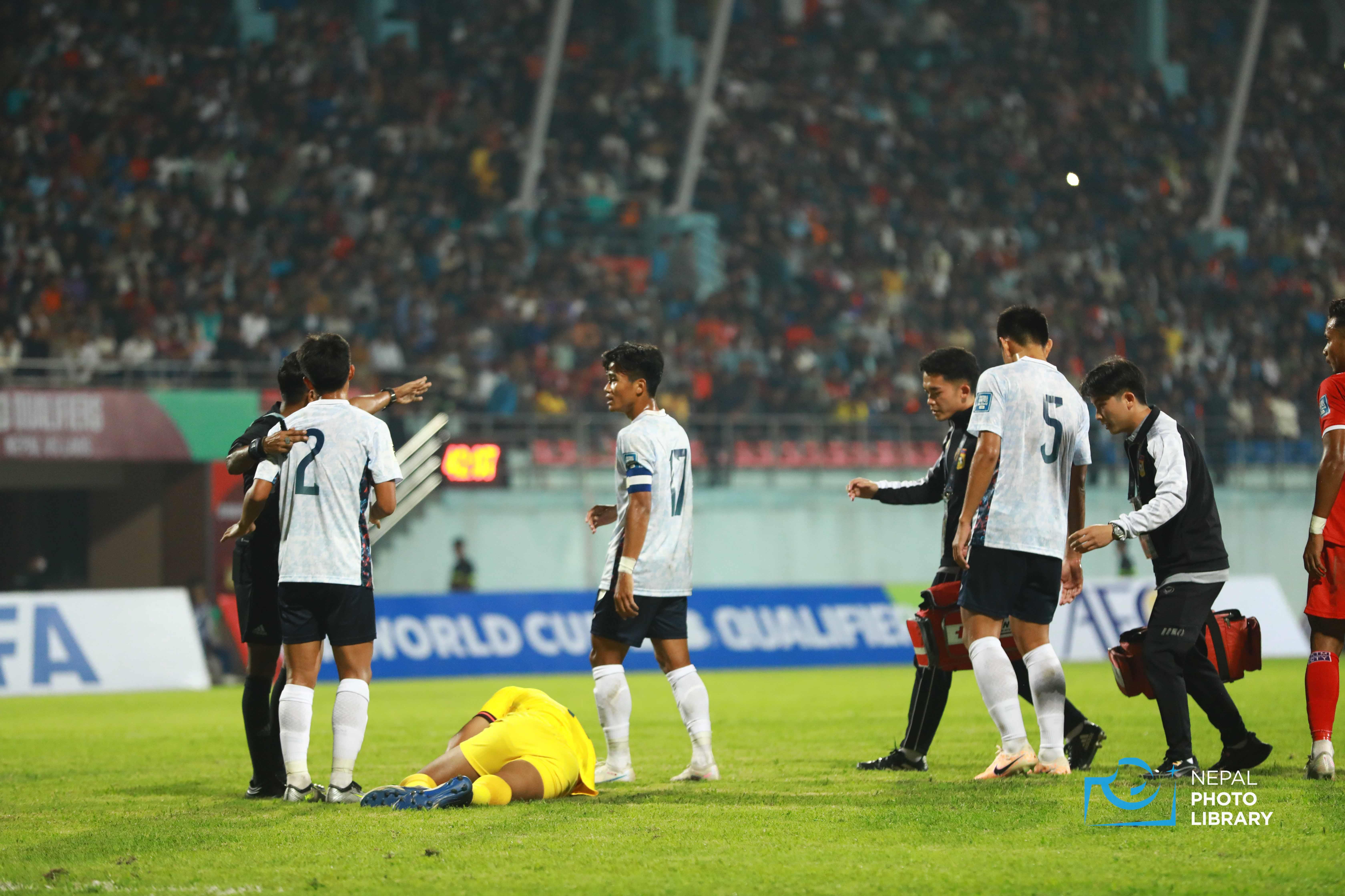 नेपालले विश्वकप छनोटअन्तर्गत पहिलो चरणको पहिलो लेगमा लाओसविरुद्ध १–१ को बराबरी खेलेको छ। त्रिपुरेश्वरस्थित दशरथ रंगशालामा भएको खेलमा पहिलो हाफमा पछि पारे नेपालले दोस्रो हाफको शुरूआतमा खेलमा बराबरी गरेको हो। नेपालका लागि अञ्जन विष्टले गोल गर्दा लाओसका लागि कप्तान बौनफाचन बौनकोङले गोल गरेका थिए। यो गोलसँगै अञ्जनले राष्ट्रिय पुरुष फुटबल टोलीबाट सर्वाधिक गोलको कीर्तिमान बराबरी गरेका छन्। उनले हरि खड्का र नीराजन रायमाझीको १३ गोलको कीर्तिमानीसँग बराबरी गरेका हुन्।