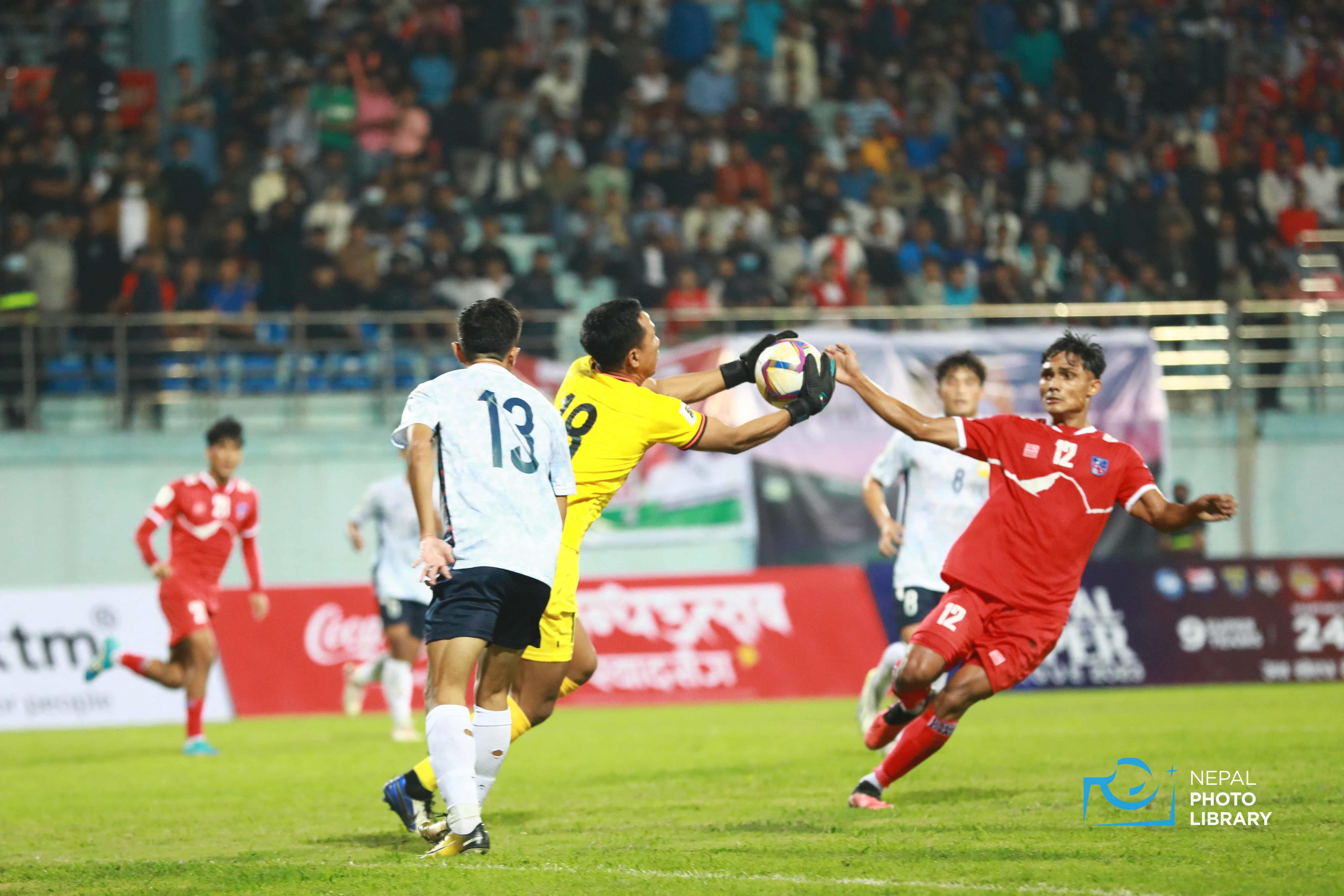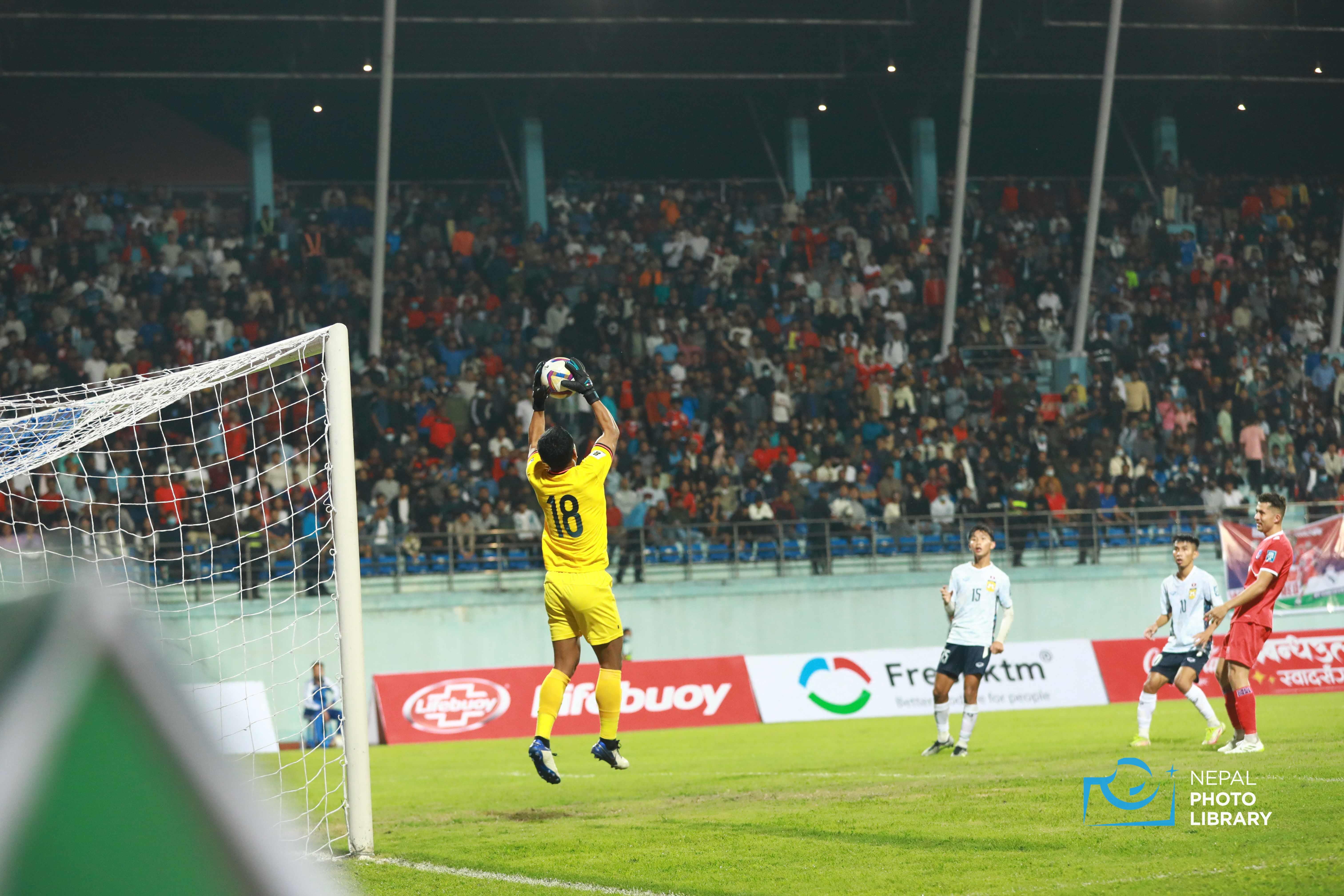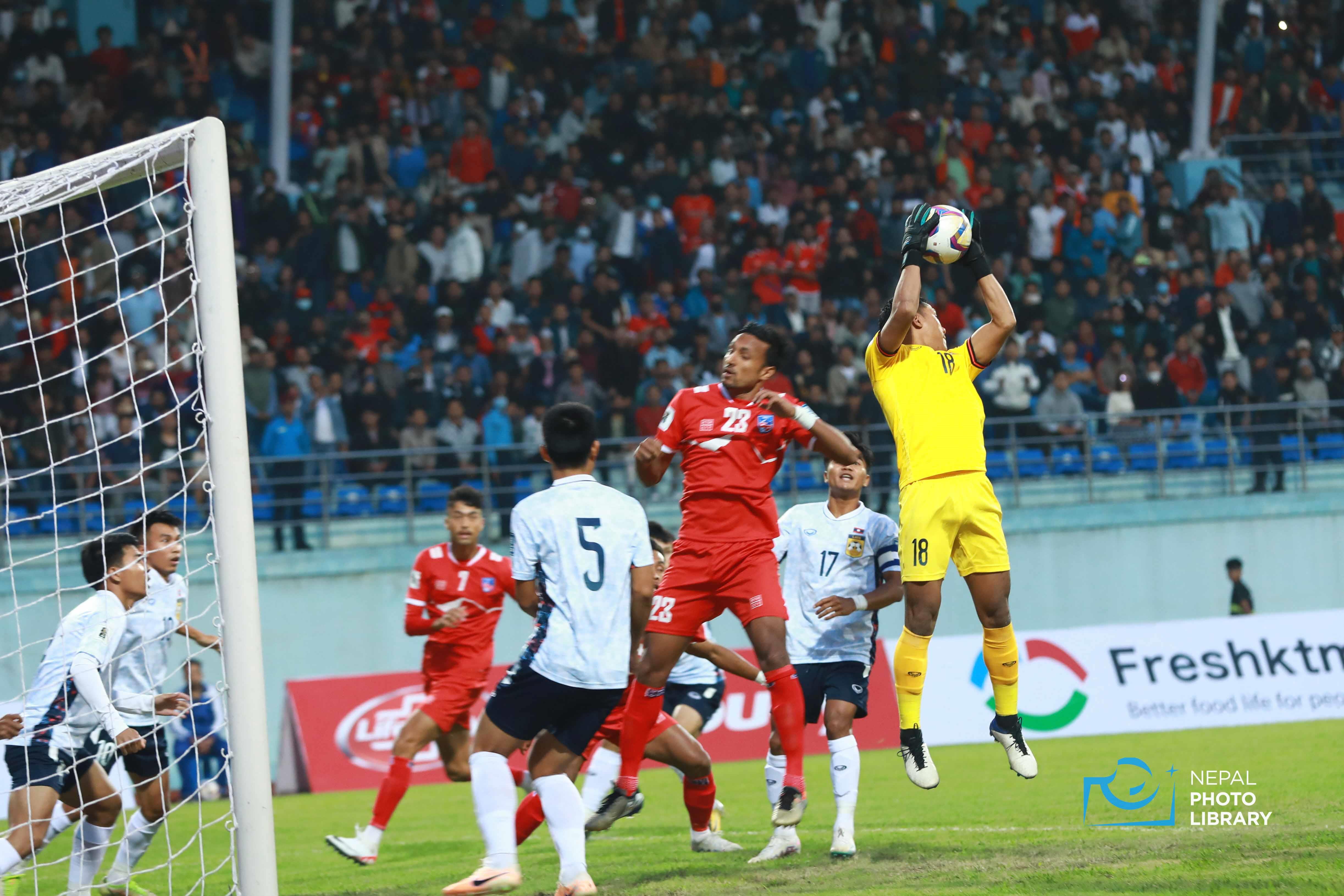 नेपालले विश्वकप छनोटअन्तर्गत पहिलो चरणको पहिलो लेगमा लाओसविरुद्ध १–१ को बराबरी खेलेको छ। त्रिपुरेश्वरस्थित दशरथ रंगशालामा भएको खेलमा पहिलो हाफमा पछि पारे नेपालले दोस्रो हाफको शुरूआतमा खेलमा बराबरी गरेको हो। नेपालका लागि अञ्जन विष्टले गोल गर्दा लाओसका लागि कप्तान बौनफाचन बौनकोङले गोल गरेका थिए। यो गोलसँगै अञ्जनले राष्ट्रिय पुरुष फुटबल टोलीबाट सर्वाधिक गोलको कीर्तिमान बराबरी गरेका छन्। उनले हरि खड्का र नीराजन रायमाझीको १३ गोलको कीर्तिमानीसँग बराबरी गरेका हुन्।