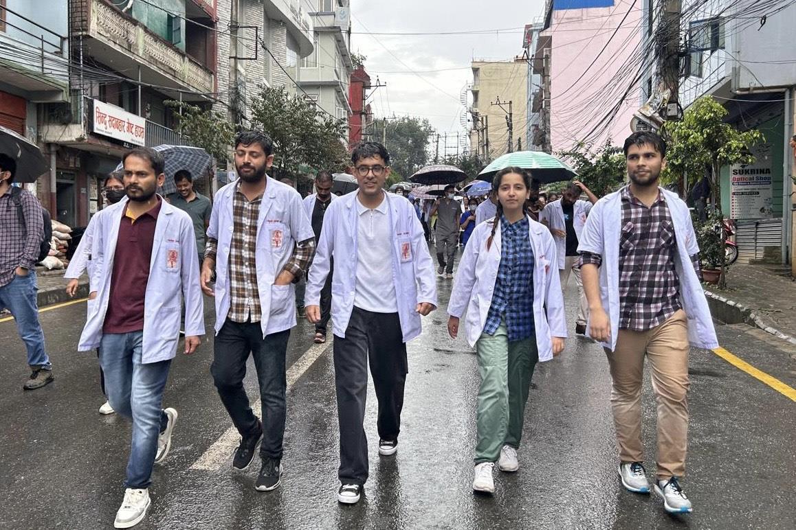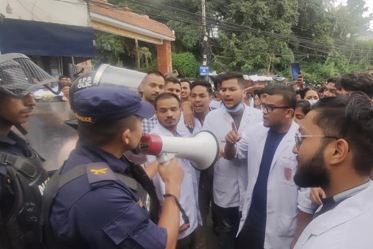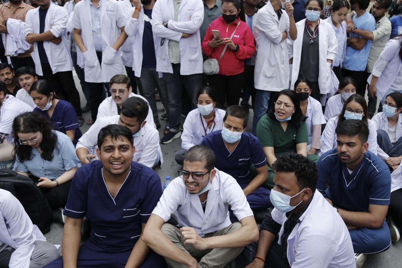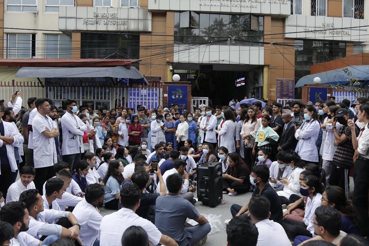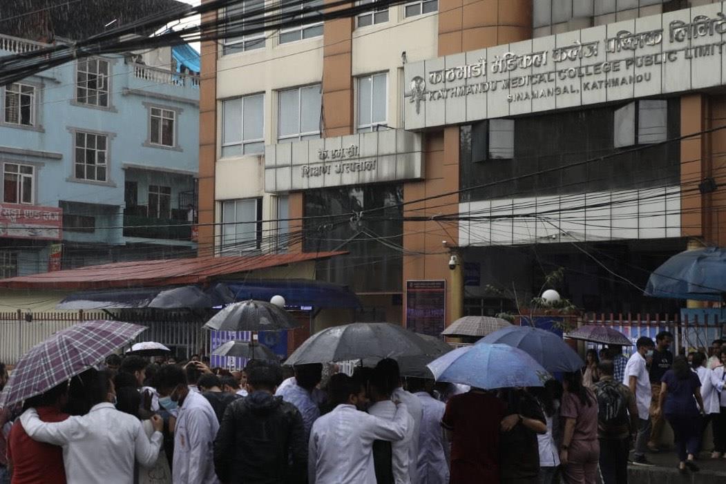 चिकित्सकमाथि कुटपिट भएको भन्दै काठमाडौंको सिनामंगलस्थित काठमाडौँ मेडिकल कलेजमा कार्यरत चिकित्सकहरू आन्दोलित बनेका छन्। अस्पतालमा कार्यरत डा. मनिष खड्कामाथि आइतबार दिउँसो ओपिडीमा आएका एक बिरामीका आफन्तले कुटपिट गरेको बताइएको छ। त्यसपछि त्यहाँ कार्यरत सम्पूर्ण चिकित्सकहरू अस्पतालको सेवा बन्द गरी अस्पताल परिसरमा नाराबाजी गर्दै प्रदर्शन गरिरहेका छन्।