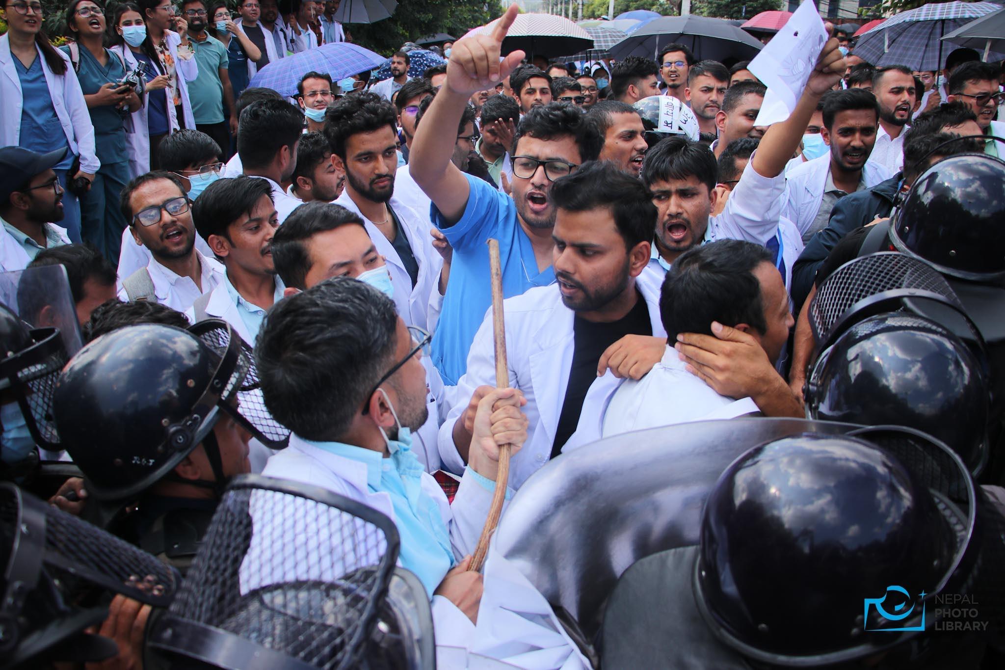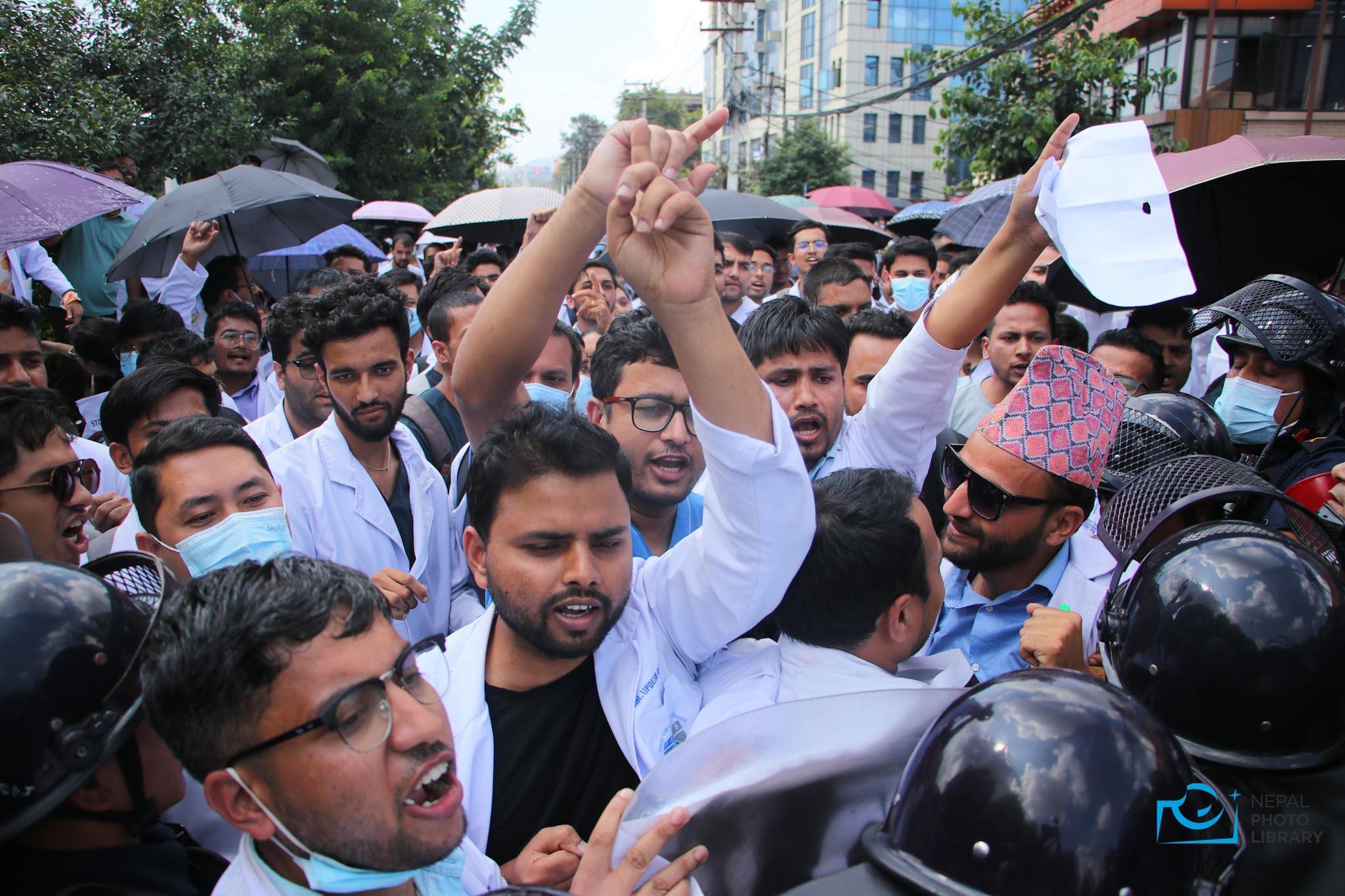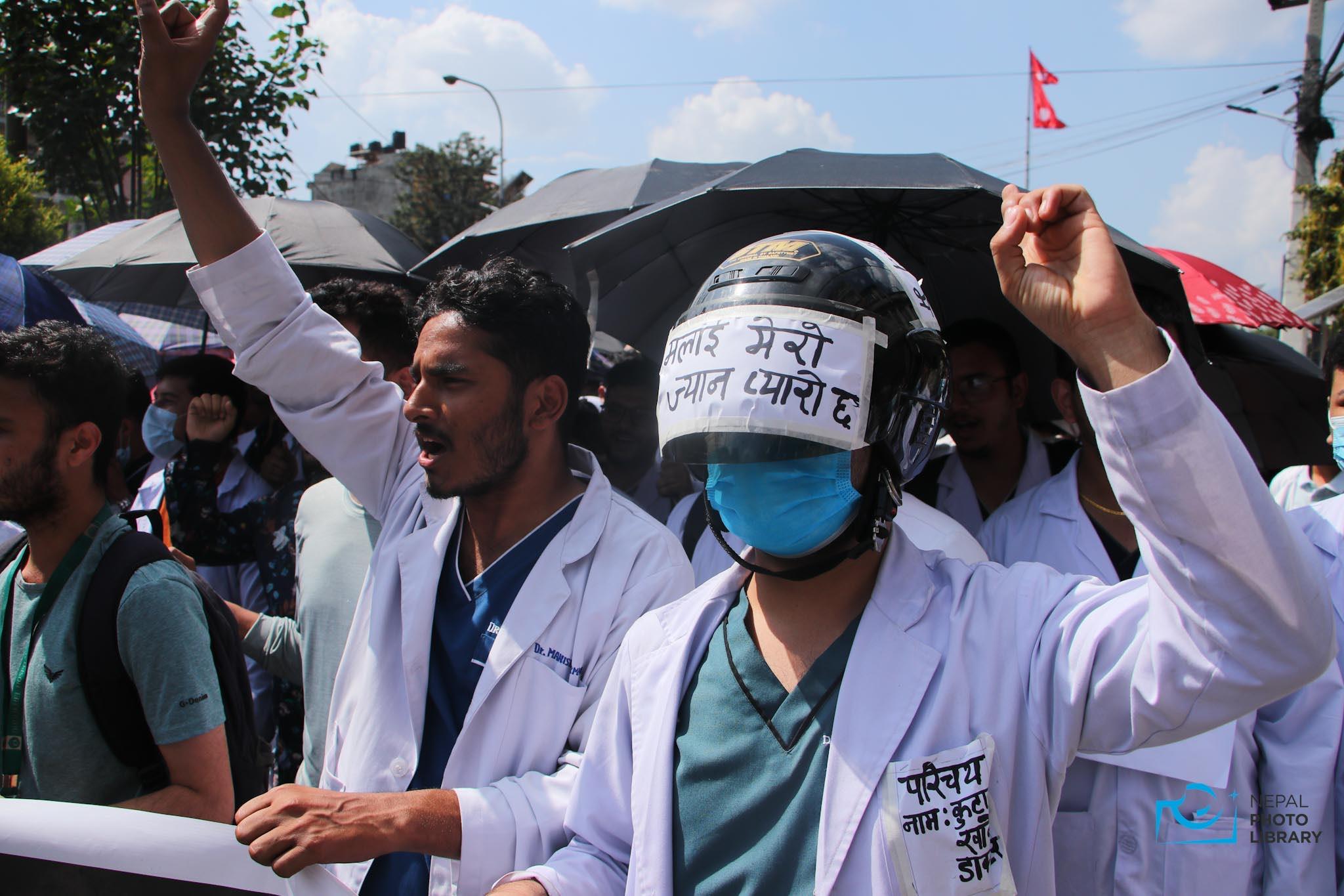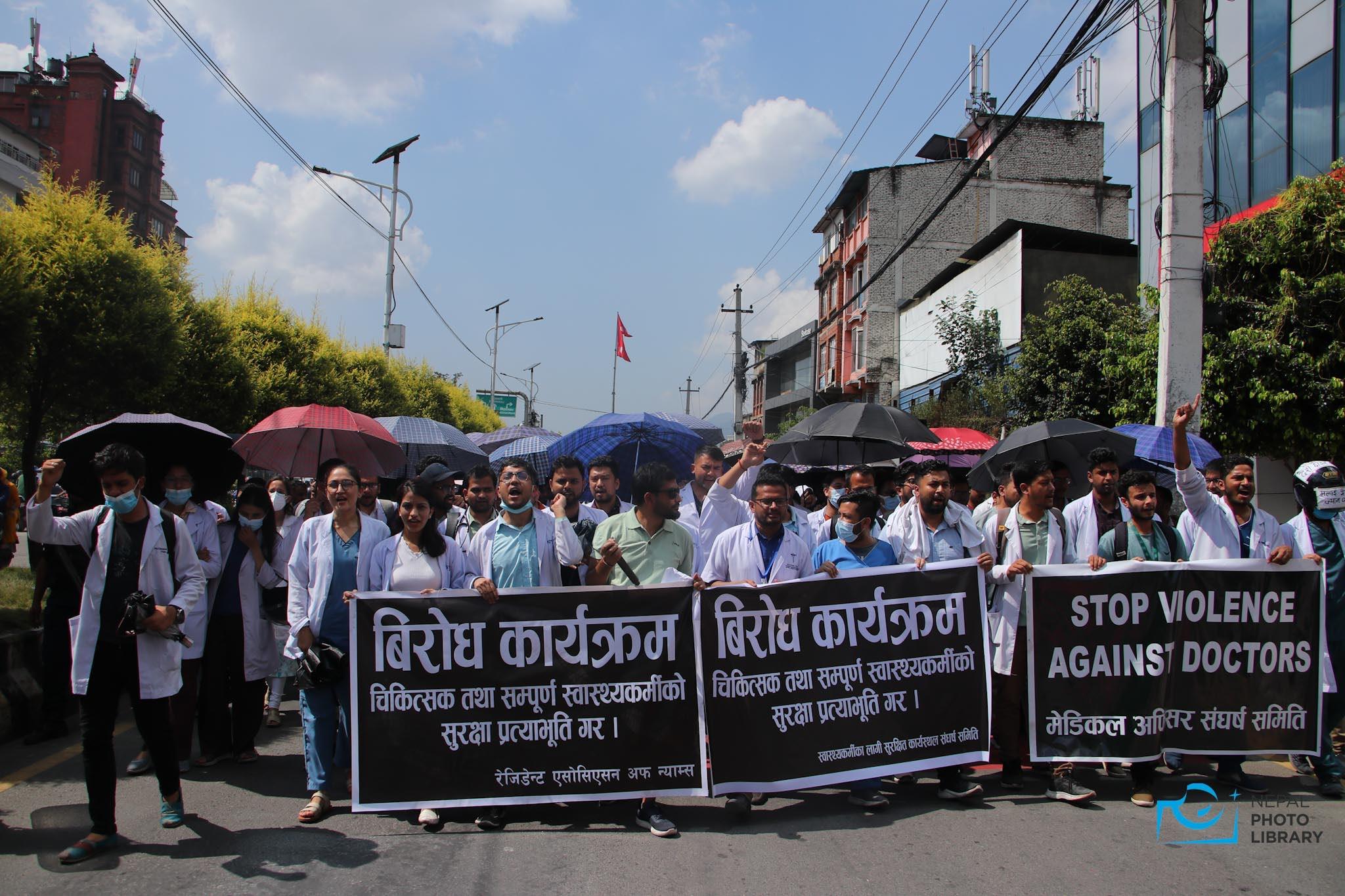 स्वास्थ्यकर्मीहरू तेस्रो दिन बिहीबार माइतीघरदेखि बानेश्वरसम्म विरोध प्रदर्शनसहित शान्तिपूर्ण र्याली गरेका छन्। विभिन्न बहानामा स्वास्थ्यकर्मीहरूमाथि आक्रमण, दुर्व्यवहार एवं कुटपिट भएको भन्दै उनीहरू त्यसको विरोधमा विगत तीन दिनदेखि आन्दोलनमा छन्। दोषीलाई कारबाही नहुँदासम्म आन्दोलन जारी राख्ने उनीहरूको अडान छ। उनीहरूले चिकित्सक तथा स्वास्थ्यकर्मीको सुरक्षा प्रत्याभूति गर्नुपर्ने लगायतका माग राखेका छन्।