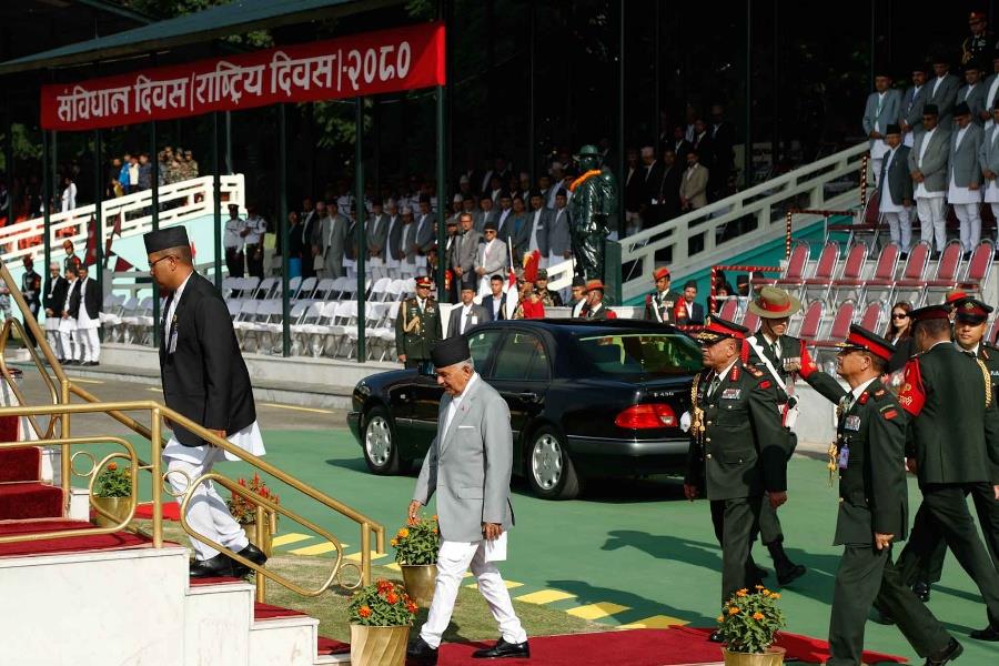 संविधान दिवस २०८० को अवसरमा बुधबार काठमाडौँको टुँडिखेलमा विशेष कार्यक्रम भएको छ। कार्यक्रममा राष्ट्रपति रामचन्द्र पौडेललगायत उच्चपदस्थ व्यक्तिहरूको उपस्थिति थियो। सो अवसरमा नेपाली सेना, नेपाल प्रहरी र सशस्त्र प्रहरीले मार्च पास ब्यान्ड प्रदर्शनी गरेका थिए। काठमाडौँ र ललितपुर महानगर तथा भक्तपुर नगरपालिकाले विभिन्न सांस्कृतिक झाँकी प्रदर्शन गरेका थिए।