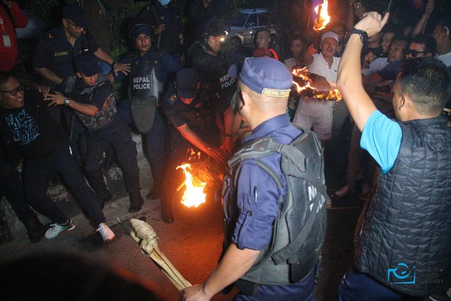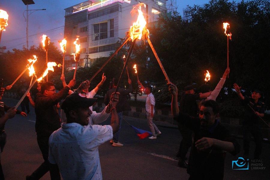 एलपी ग्यास, पेट्रोलियम पदार्थ, खाद्यान्न लगायत अन्य उपभोग्य वस्तुहरूमा भइरहेको अस्वाभाविक मूल्यवृद्धिविरुद्ध प्रमुख प्रतिपक्षी दल नेकपा एमालेनिकट राष्ट्रिय युवा संघ, नेपालले शनिबार काठमाडौँको बानेश्वरमा मसाल जुलुससहित विरोध प्रदर्शन गरेका छ। प्रदर्शनकारीले राष्ट्रिय युवा संघ नेपालको कार्यालयदेखि मसाल बाल्दै मुख्य सडकमा प्रवेश गरेर सडक एकछिन अवरोध गरेका थिए। राष्ट्रिय युवा संघले शनिबार ७७ जिल्लामै एकसाथ विरोध प्रदर्शन गरेको हो।