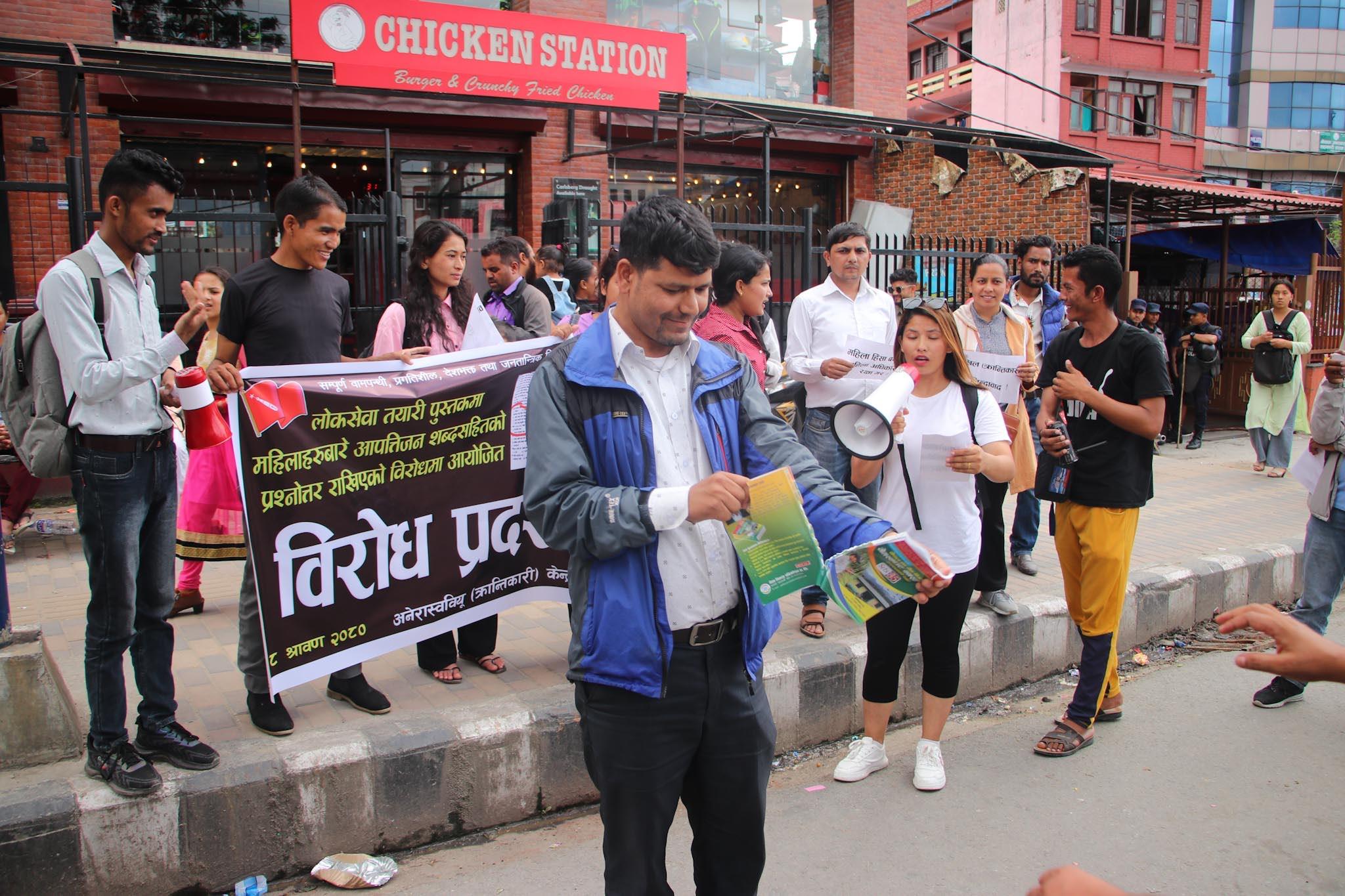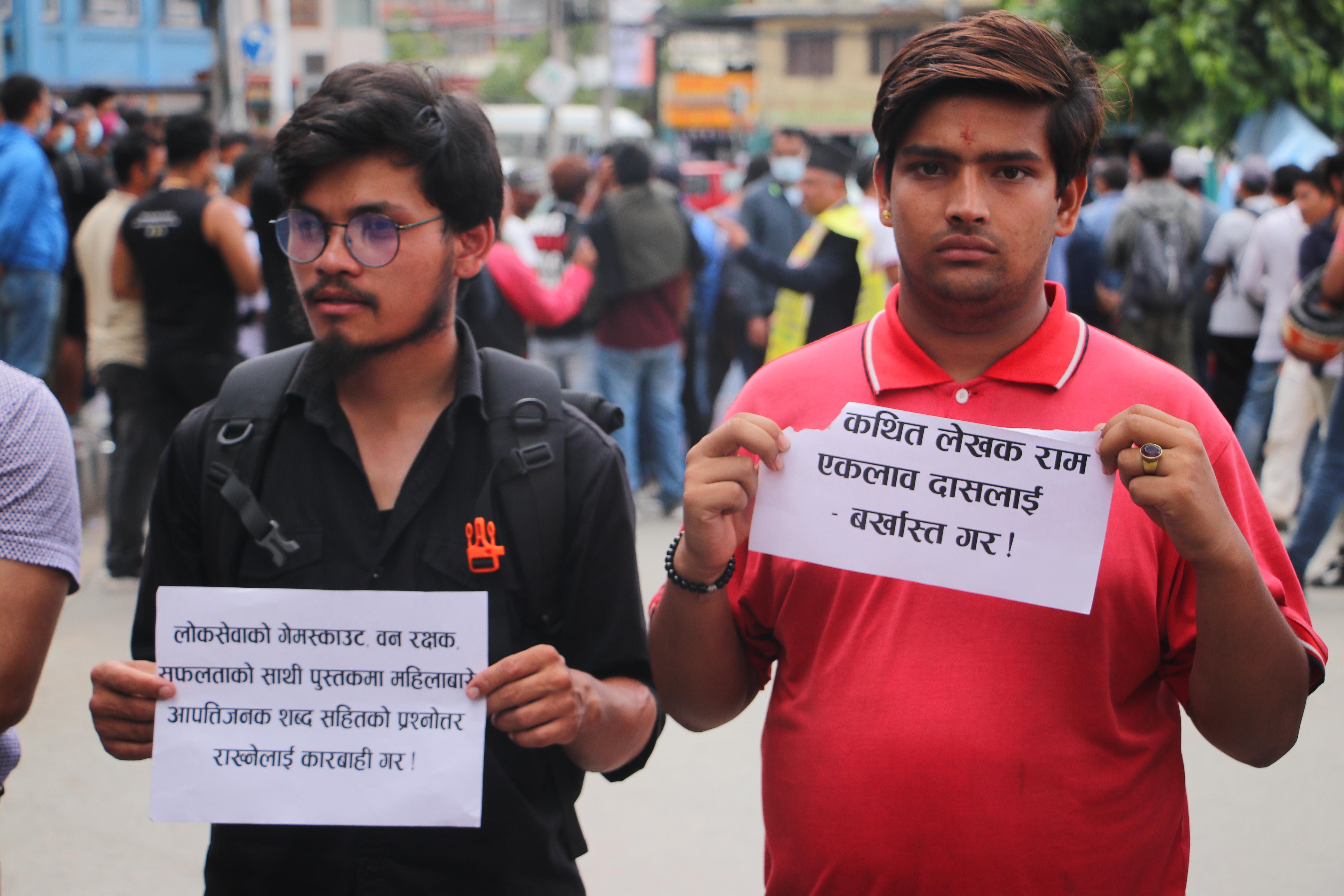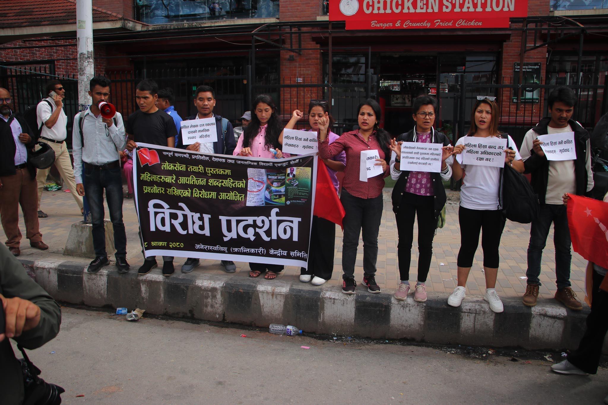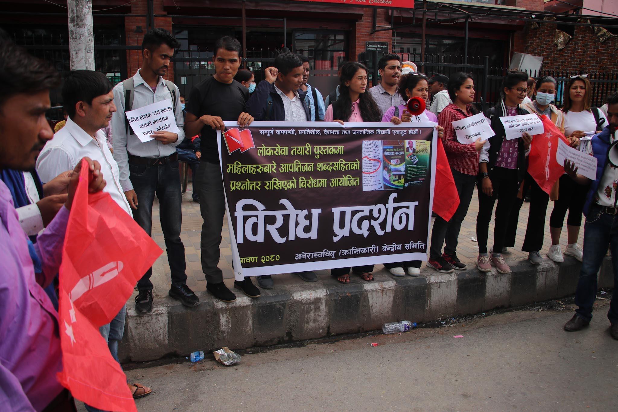 लोकसेवा तयारी पुस्तकमा महिलाबारे आपत्तिजनक शब्दसहितको प्रश्नोत्तर राखिएको भन्दै विरोध प्रदर्शन गरिएको छ। अनेरास्ववियू क्रान्तिकारीले सोमबार काठमाडौँको माइतीघरमा प्रदर्शन गरेको हो। सो क्रममा प्रदर्शनकारीले लेखक राम एकवाल दासको किताब जलाएका थिए।