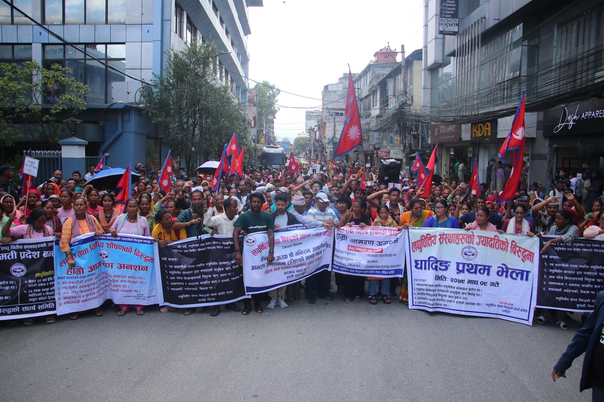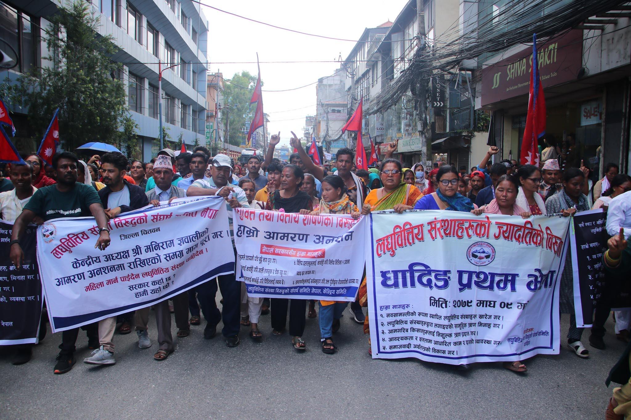 लघुवित्तीय संस्थाविरुद्धको संघर्ष समिति नेपाल केन्द्रीय समितिले विभिन्न माग राखी शनिबार राष्ट्र बैंक घेराउ कार्यक्रम गरेको छ। माइतीघरमा भेला भई करिब आठ/नौ सय जना पीडितहरू बालुवाटारस्थित राष्ट्र बैंकको केन्द्रीय कार्यालय पुगेका थिए। उनीहरूले केही समय भाटभटेनी चोकअगाडि बाटोमा बसेर विरोध प्रदर्शन गरेका थिए।