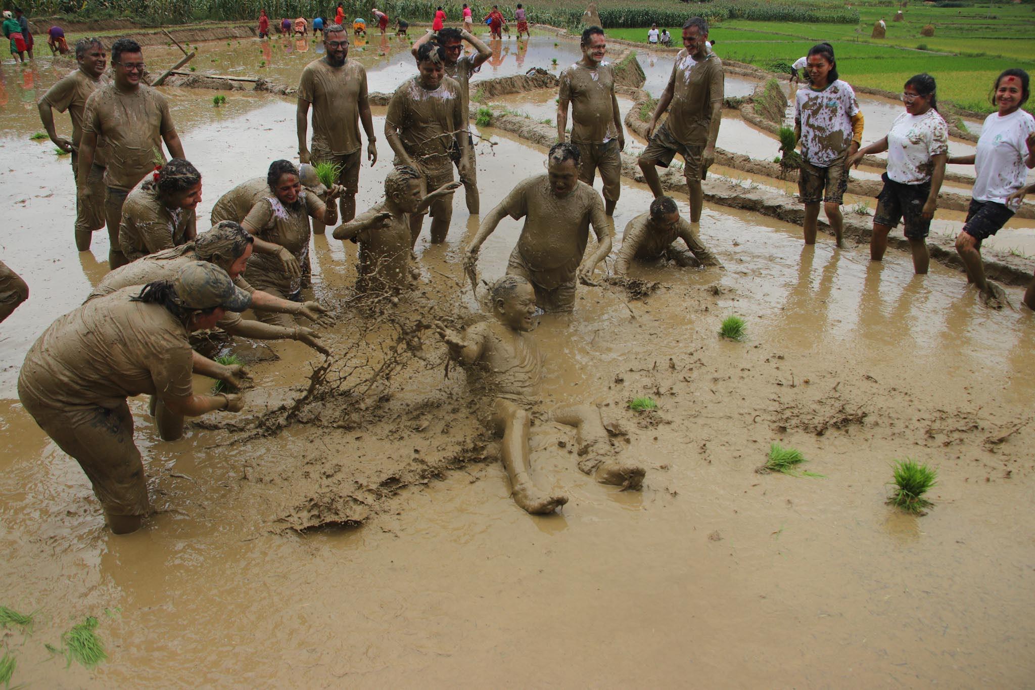 असार १५ का दिन धान रोपाइँलाई लिएर देशभर एकखाले उत्सवझैँ बन्ने गर्छ। यस दिनलाई ‘मानो रोपेर मुरी फलाउने दिन’ भनेर चिनिन्छ। पछिल्लो समय असार १५ लाई धान दिवसका रूपमा समेत मनाउन थालिएको छ। यो वर्ष ‘जलवायु अनुकूलित कृषकमैत्री प्रविधि, धान उत्पादनमा वृद्धि’ भन्ने नारासहित शुक्रबार २०औँ राष्ट्रिय धान दिवस तथा रोपाइँ महोत्सव मनाइँदै छ। सोही अवसरमा नुवाकोटको बेलकोट्गढी-१२, वासुकी गाउँमा भिटोफ नेपाल र बेल्कोटगढी गाउँपालिकाको संयुक्त आयोजना र नेपाल पर्यटन बोर्डको प्रवर्द्धनमा धान दिवस तथा रोपाइँ महोत्सव मनाइएको छ। तस्वीर : फोटो लाइब्रेरी