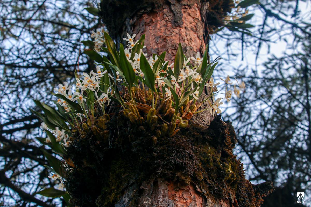 मनसुनको आगमनसँगै वन–जंगलमा चिस्यान बढेको छ। चिस्यान बढेसँगै अजङका बूढा रूखहरूमा एक किसिमको लेउ लागेको देख्न सकिन्छ। यही लेउमा सप्रिन्छ परजीवी फूल सुनाखरी। बूढा रूखको लेउ तथा पातपतिङ्गर जम्मा हुने हाँगाहरूको बीचमा सुनाखरीको बिरुवा हुर्केको हुन्छ। माकुराको जालोजस्तै आफ्ना जरा फिँजाएर फैलने सुनाखरीका फूल निकै आकर्षक देखिन्छन्। आगन्तुकको मन लोभ्याउने परजीवी फूल सुनाखरीले जंगल ढकमक्क पारेर सौन्दर्यता पनि थपेको हुन्छ। हेर्नुहोस् काठमाडौँ उपत्यकाका आसपास वन–जंगलमा पाइएका सुनाखरीका मनमोहक दृश्य। तस्वीर: किसन पाण्डे