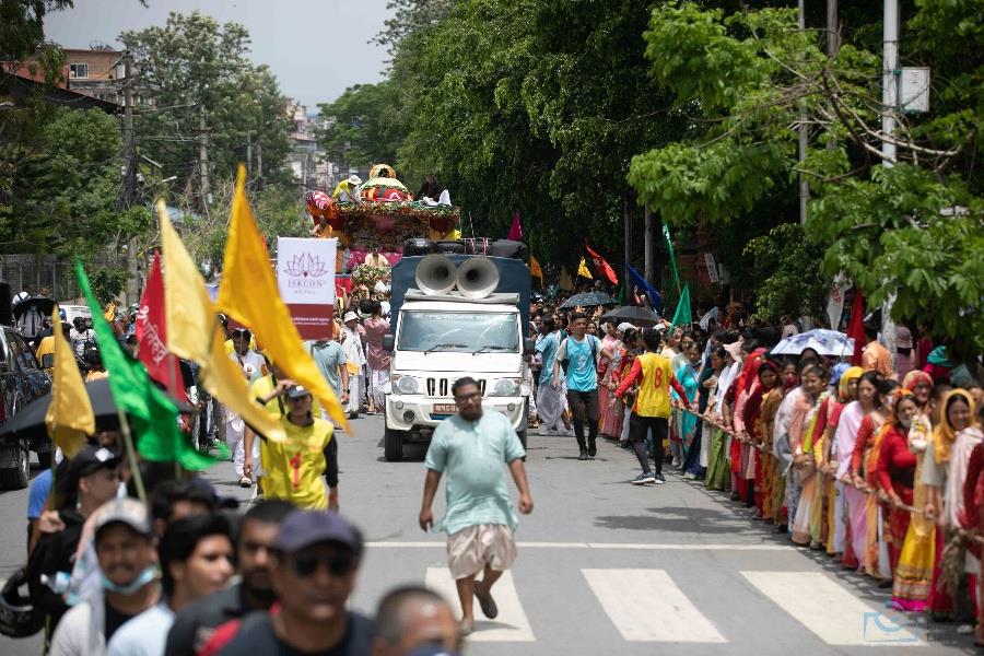 अन्तर्राष्ट्रिय कृष्ण भावनामृत संघ इस्कोन को आयोजनामा काठमाडौँको कमलादी, जमल, भद्रकाली, न्यूरोड हुँदै वसन्तपुरसम्म रथयात्रा निकालिएको छ। हरेक वर्षको असार शुक्ल द्वितीयाको दिन भारतलगायत विश्वका धेरै ठाउँमा जगन्नाथको रथयात्रा गर्ने प्रचलन छ। यस वर्ष आयोजित रथयात्रा नेपालको २७औँ हो। भारतको जगन्नाथ पुरीमा आज विशेष समारोहसहित यस्तै रथयात्रा हुने गर्छ। चार प्रमुख धाममध्ये उत्तरमा बद्रीनाथ, दक्षिणमा द्वारकानाथ, दक्षिणमा रामेश्वरम र पूर्वमा जगन्नाथ पुरी पर्छन्। यी चार धामलाई सत्य, द्वापर, त्रेता र कलियुगका रूपमा समेत हिन्दु धर्मावलम्बीहरूले मान्ने गरेका छन्।