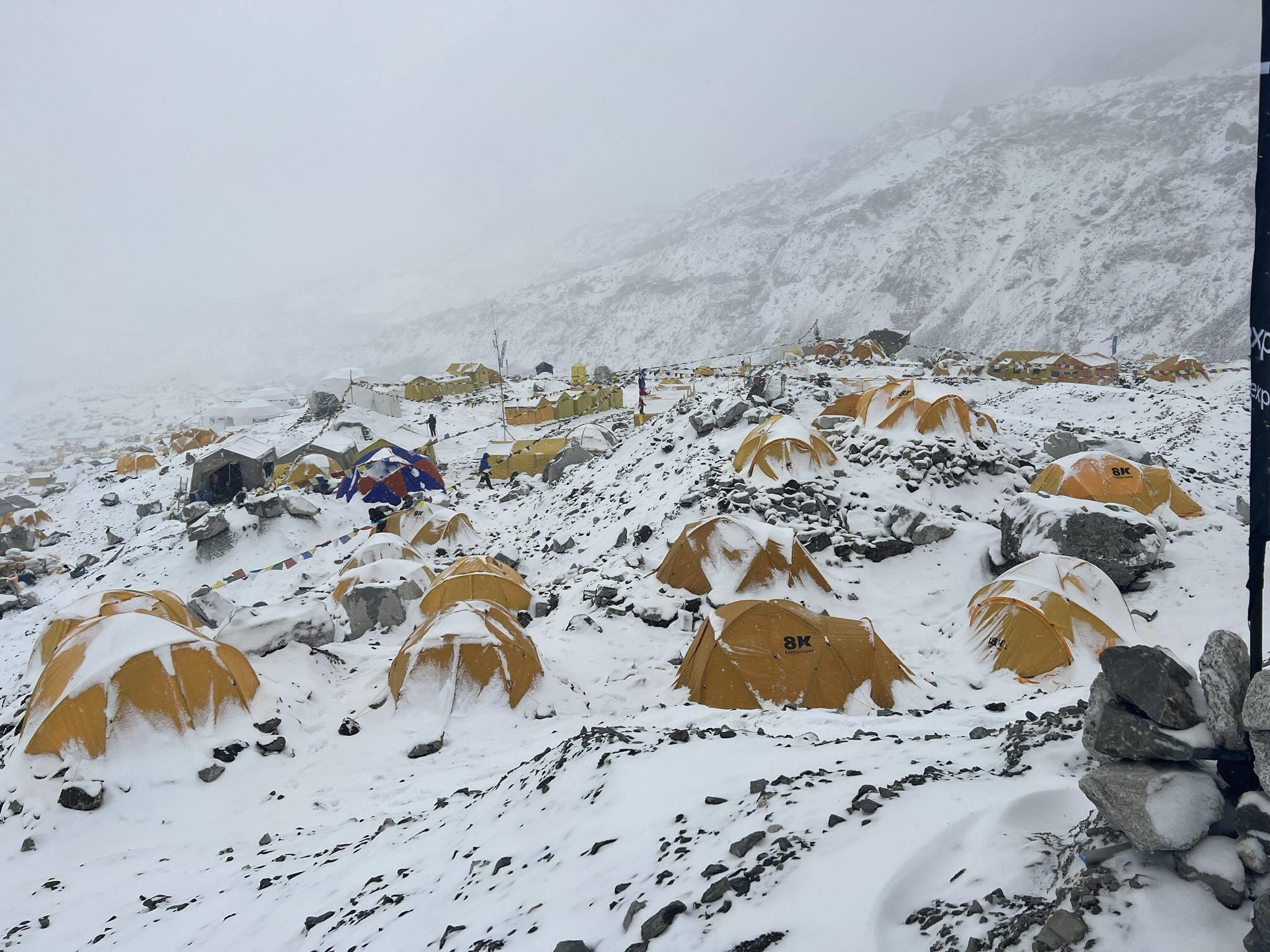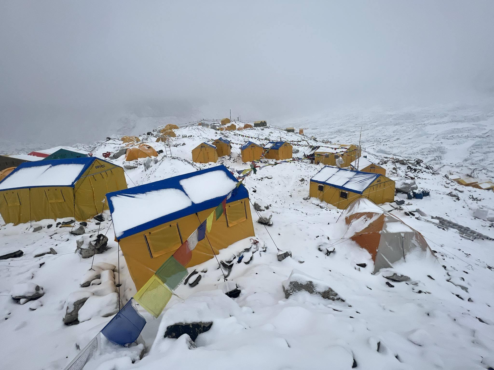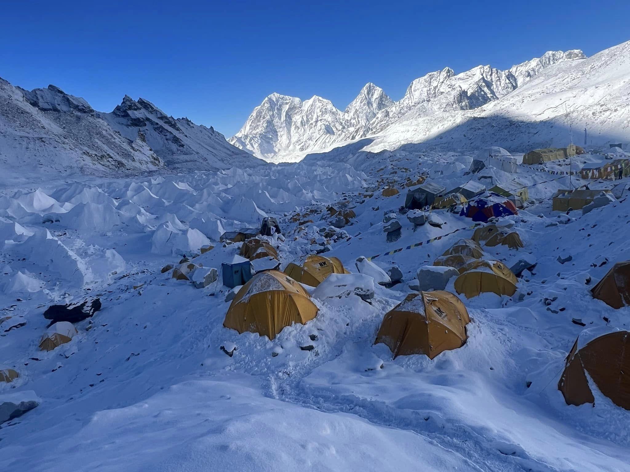 सगरमाथा, ल्होत्से र नुत्से हिमालको आधारशिविरमा आरोहीहरू
