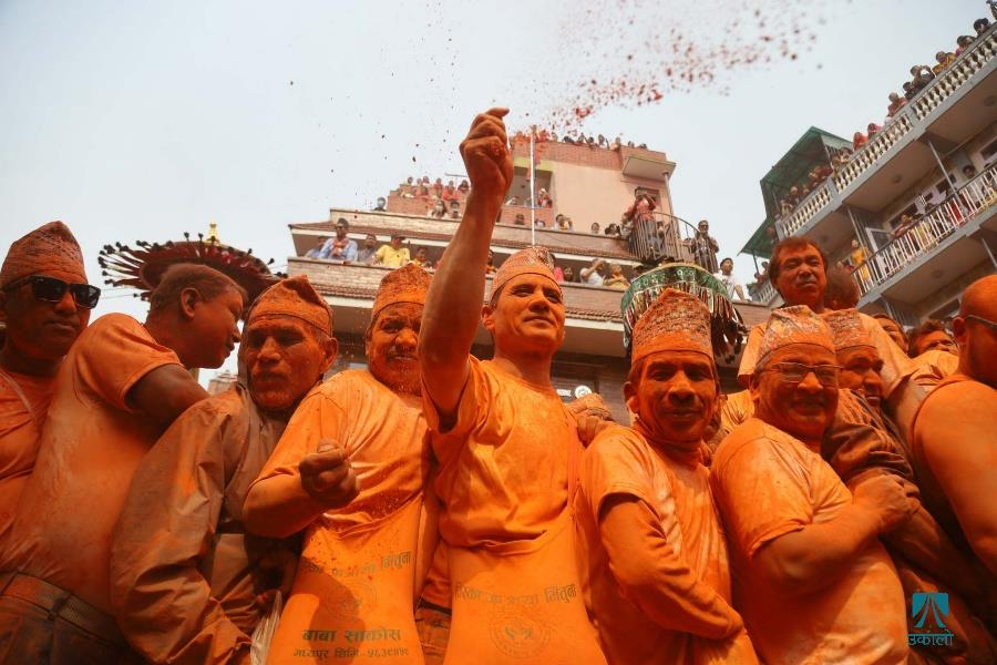 बिस्केट जात्राको अवसरमा मध्यपुरथिमिका स्थानीयले शनिबार बिहानैदेखि हर्षोल्लासका साथ सिन्दुर खेलेर सुथः सिया जात्रा मनाएका छन्। बिहानैदेखि मध्यपुरथिमिको टोलटोलबाट विभिन्न देवताको मूर्तिलाई खटमा विराजमान गराई खट बोकेर सिन्दुर खेल्दै पूजाआजाका साथ यो जात्रा मनाइएको हो। यस जात्राको अवसरमा बिहानै बालकुमारी र कालिका अर्थात् बालाखुको खट बालकुमारी मन्दिरबाट बाहिर निकालेको थियो। बिहीबारदेखि विष्णुवीर र दक्षिण बाराहीको खटसमेत मन्दिरमा राखिएको थियो। बिहानै सिद्धिकालीको खट ल्याएर आफ्ना गणसहित बालकुमारी प्रवेश गराएपछि यो जात्रा शुरू भएको थियो।