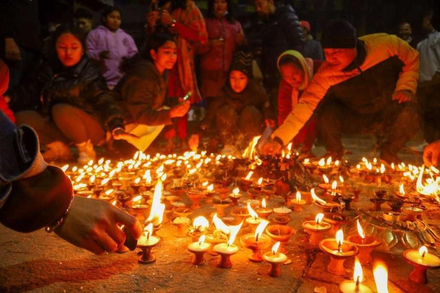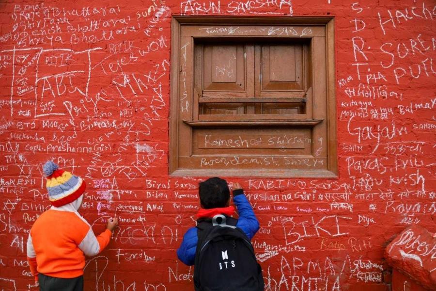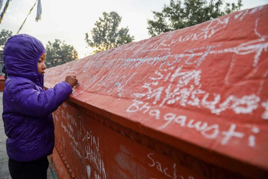 श्रीपञ्चमीलाई अक्षरारम्भको दिन पनि भन्ने चलन छ। यस दिनदेखि बालबालिकालाई विद्यालय पठाउने, लेख्न सिकाउने गरिन्छ। अभिभावकहरू छोराछोरीलाई लिएर मन्दिर, विद्यालय पुगेका छन्। बालबालिकाले विभिन्न मन्दिर र विद्यालयका भित्तामा चकले लेखेर अक्षरारम्भ गरेका छन्। तस्वीरहरू: अमित मचामसी र फाेटाे लाइब्रेरी