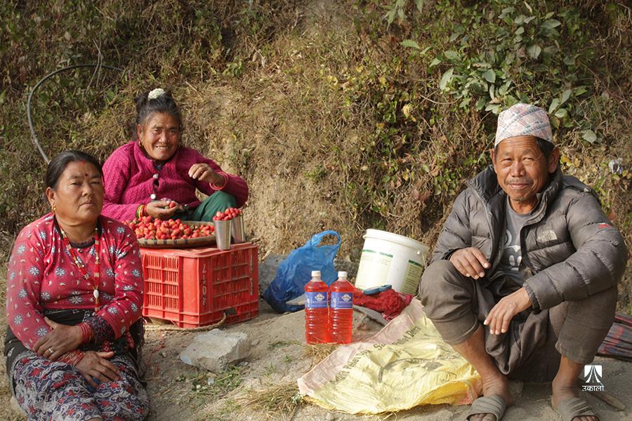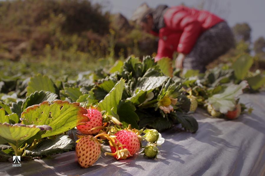 नुवाकोटको हिमाली क्षेत्र ककनीमा झण्डै ३ दशकअघि शुरू गरिएको स्ट्रबेरी खेती मौलाएको छ। यहाँको स्ट्रबेरी स्थानीय बजारका साथै काठमाडौँमा समेत बिक्री हुने गर्छ। तस्वीरः किसन पाण्डे/उकालो