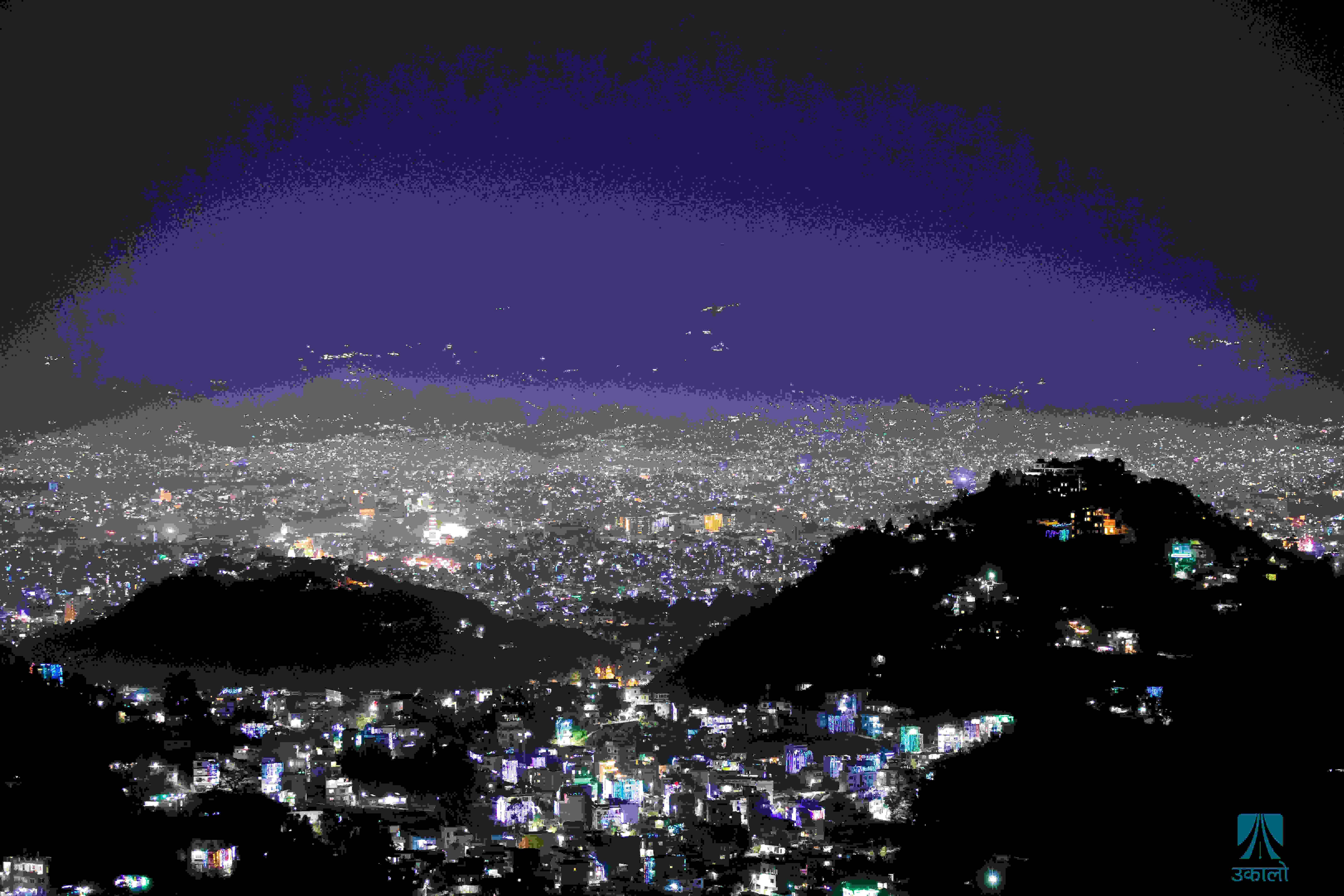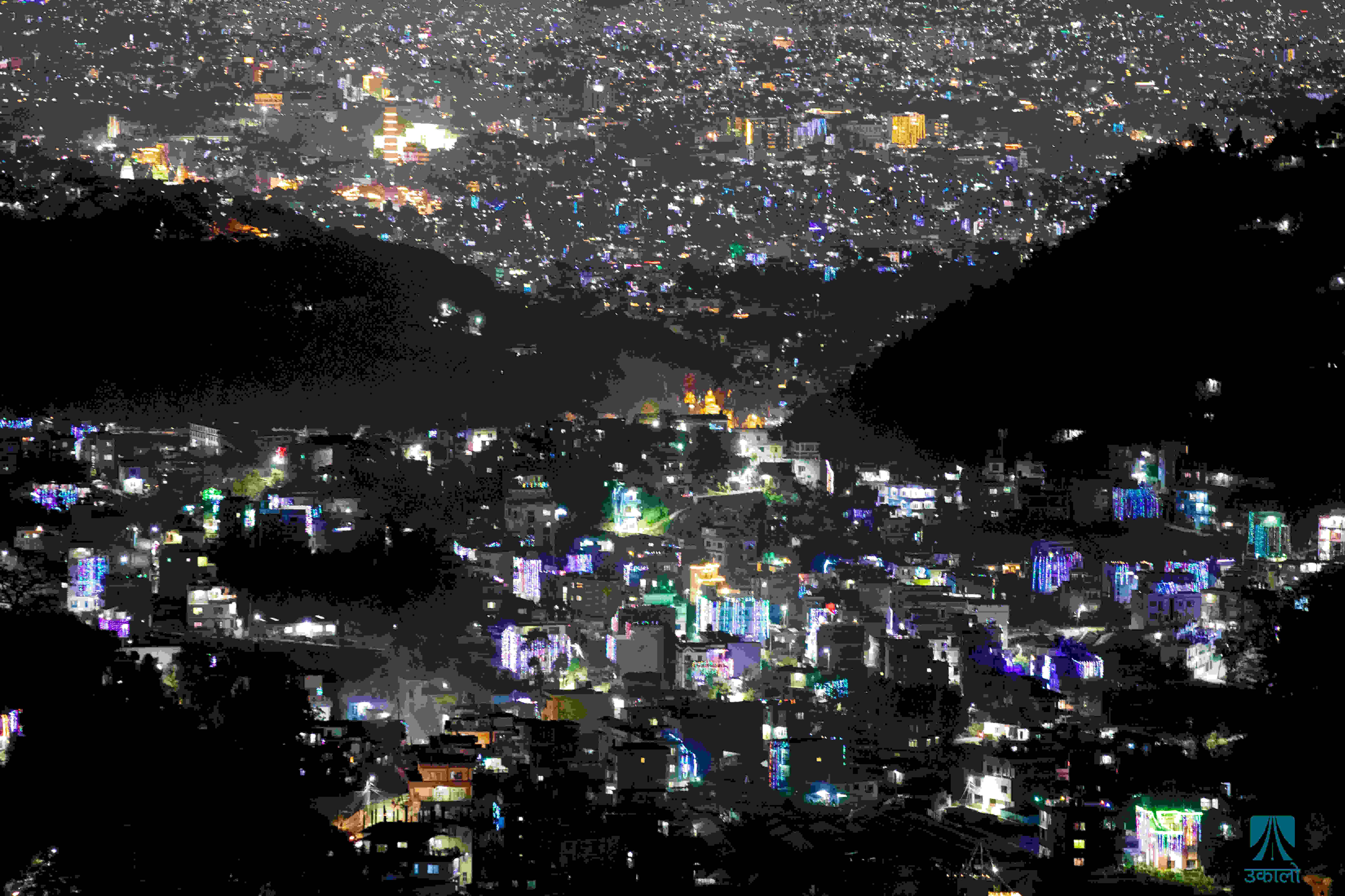 तिहार लागेसँगै काठमाडौँ उपत्यका झिलीमिली भएको छ। आइतबार बेलुका स्वयम्भूस्थत हलचोकबाट देखिएको काठमाडौँः