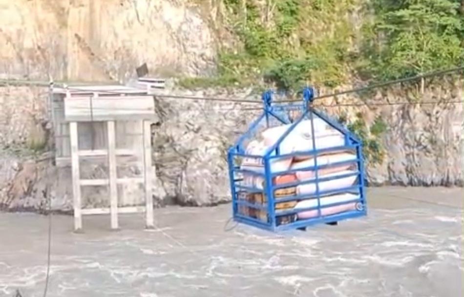 खोटाङ– दिक्तेल–गाईघाट सडकखण्डको फोक्सिङटारस्थित सुनकोशी नदीमा सञ्चालित मोटरेबल पक्की पुल बाढीले बगाएपछि सामान ढुवानी गर्नका लागि घिर्नी जडान गरिएको छ।