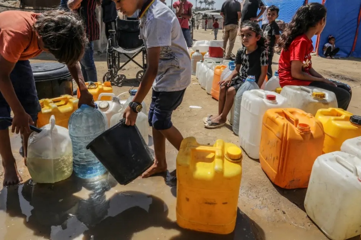 गाजाको केन्द्रमा रहेको मुवासी शिविरमा बसोबास गरिरहेका लाखौँ विस्थापित चर्को गर्मी, पानीको चरम अभाव र पानीजन्य रोगसँग जुधिरहेका छन्। दूषित पानी पिउनुपर्ने बाध्यताले उनीहरूको स्वास्थ्य संकट झन् बढ्दै गएको छ।
