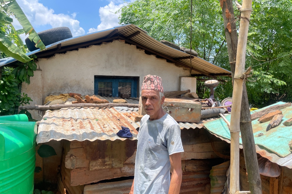 “थुक्ने जग्गा पनि आफ्नो छैन,” उनी भन्छन्, “सम्पत्ति भने पनि जे भने पनि यही अरूले दिएको जग्गामा सरकारले बनाइदिएको सानो घर र दुई/चार वटा कुखुरा छन्। त्यत्ति हो। कुखुरा पनि थुनेर पाल्छौँ। नत्र अरूको जग्गामा गइहाल्छ।”