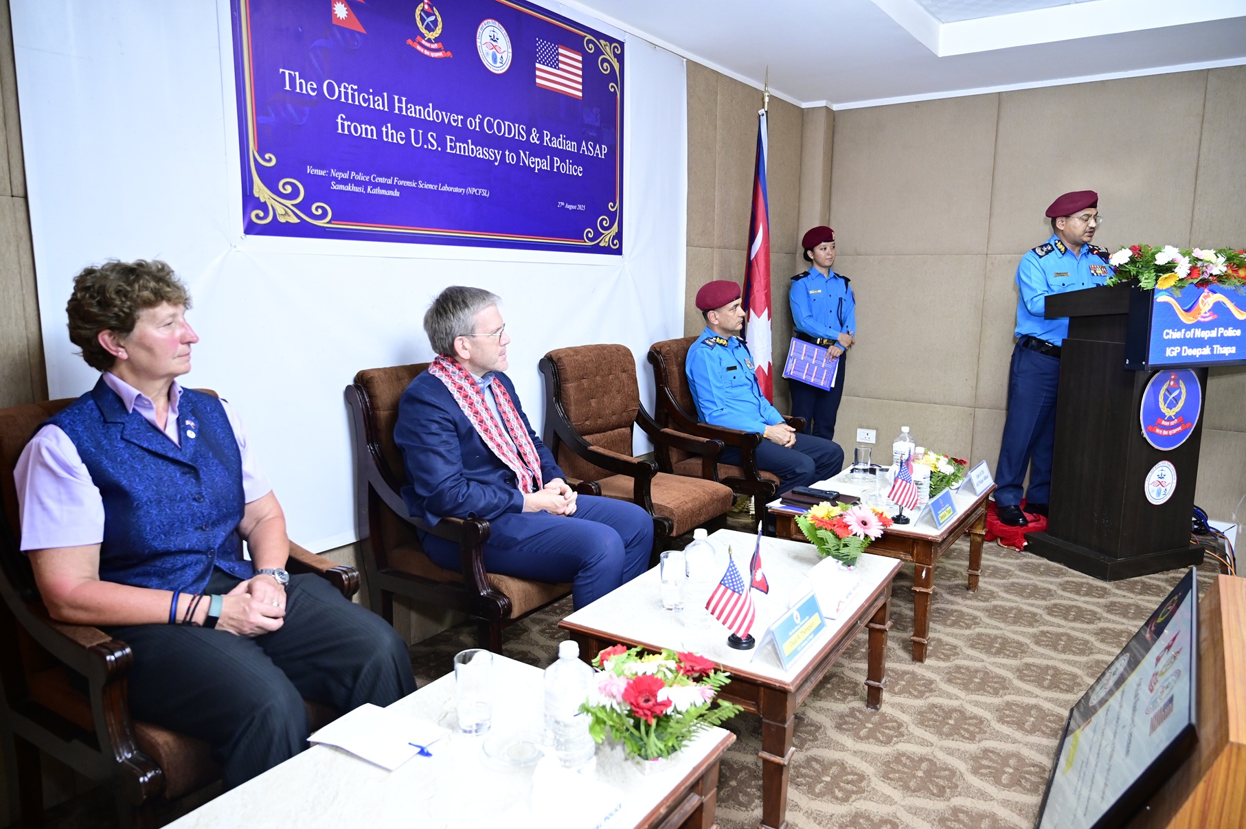 प्रहरी महानिरीक्षक थापाले अमेरिकी दूतावासले केन्द्रीय विधिविज्ञान प्रयोगशालाको क्षमता अभिवृद्धि एवं विकासका लागि विगतका वर्षमा विभिन्न परामर्श, तालिम र उपकरणसमेत प्रदान गर्दै आइरहेको र यसले गर्दा अन्तर्राष्ट्रिय मापदण्डअनुरूप क्षमतावान एवं दक्ष फोरेन्सिक विज्ञहरू उत्पादन गर्न मद्दत पुगेको बताए।
