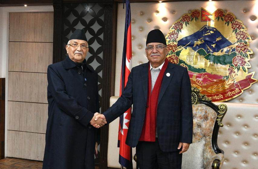 काठमाडौँ- प्रधानमन्त्री पुष्पकमल दाहाल ‘प्रचण्ड’ र नेकपा (एमाले)का अध्यक्ष केपी शर्मा ओलीबीच भेटवार्ता भएको छ।