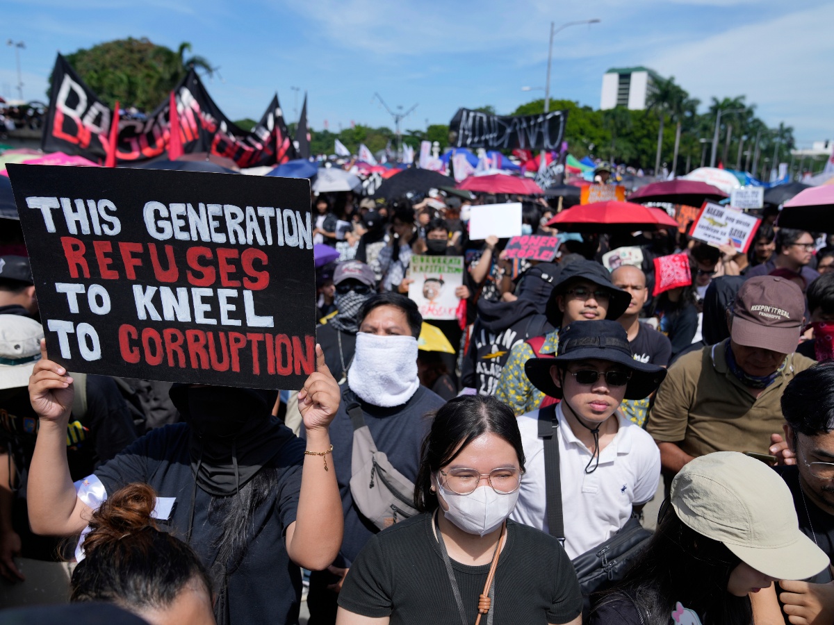 बाढी नियन्त्रण परियोजनामा सांसद, अधिकारी र व्यवसायीहरू संलग्न रहेको भनिएको भ्रष्टाचार काण्डलाई लिएर आइतबार फिलिपिन्सको राजधानी मनिलामा हजारौँ प्रदर्शनकारीहरू सडकमा उत्रिएका छन्।