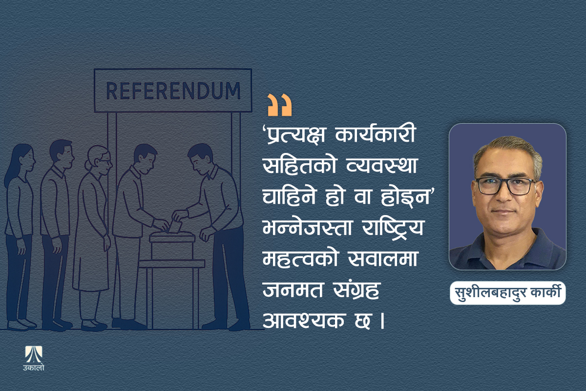 त्यसैले, फागुन २१ गतेको निर्वाचनमै सम्भव भए यो सवालको लागि नत्र कम्तीमा शासकीय स्वरूपसँग सम्बन्धित विषयको लागि मात्र अर्को एउटा मतपत्र सामेल गरी जनमत संग्रह गर्ने मध्यमार्गी बाटो अवलम्बन गर्नु उचित हुन्छ। वर्तमान सरकारको लागि पनि आफ्नो सेफ ल्यान्डिङ हुनसक्छ। यो विधि सजिलो मात्र नभई आफूले कुनै असंवैधानिक कार्य गर्नु पनि नपर्ने, वैधानिक रूपमा जेनजीको माग सम्बोधन हुने र यसको कार्यान्वयनको दायित्व पनि आउने सार्वभौम संसद्ले लिने हुँदा कुनै आक्षेपको सामना पनि गर्नुपर्ने छैन। यसो गर्न सके, यो जेनजीको पनि सानो समुदायको मात्र माग हो या बहुमतको चाहना हो भन्ने समेतको पुष्टि भई निर्वाचन पछिको संसद्को लागि नैतिक दायित्वसमेत हुन जाने हुन्छ।