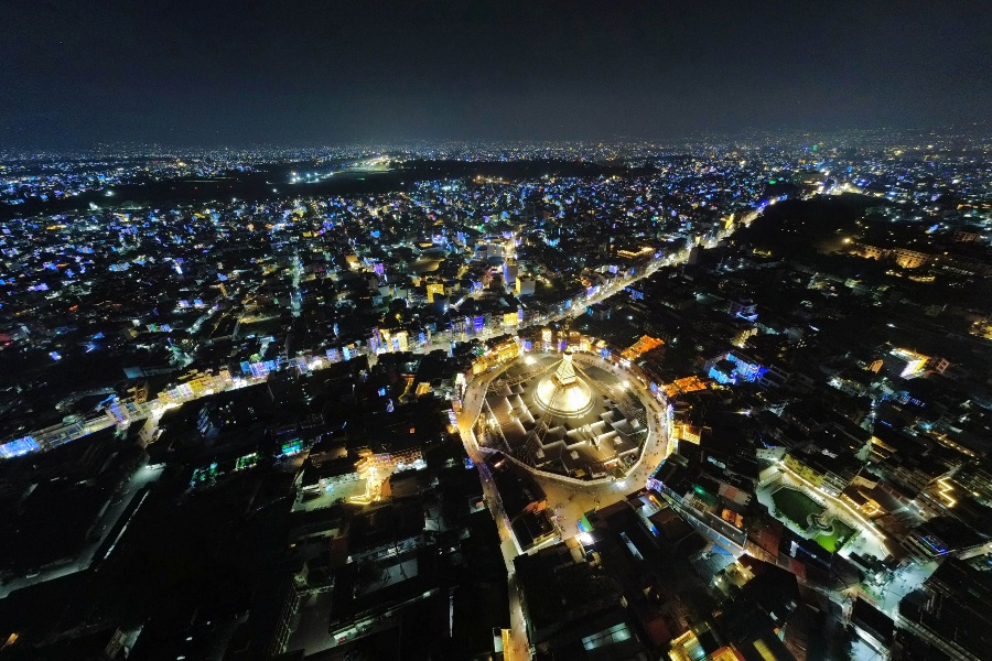 यहाँका घर, टोल र मठमन्दिर झिलिमिली बत्तीले सजिएसँगै नजिकका डाँडाहरूबाट उपत्यका मनमोहक देखिएको छ।