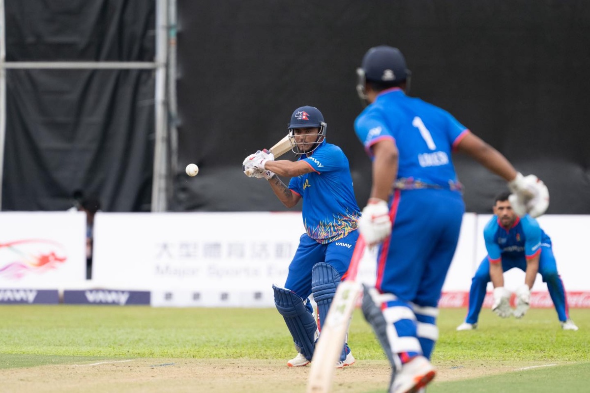 नेपालका लागि राशिद खानले ह्याट्रिकसहित ४ विकेट लिए। एक विकेट लोकेश बमका नाममा रह्यो।