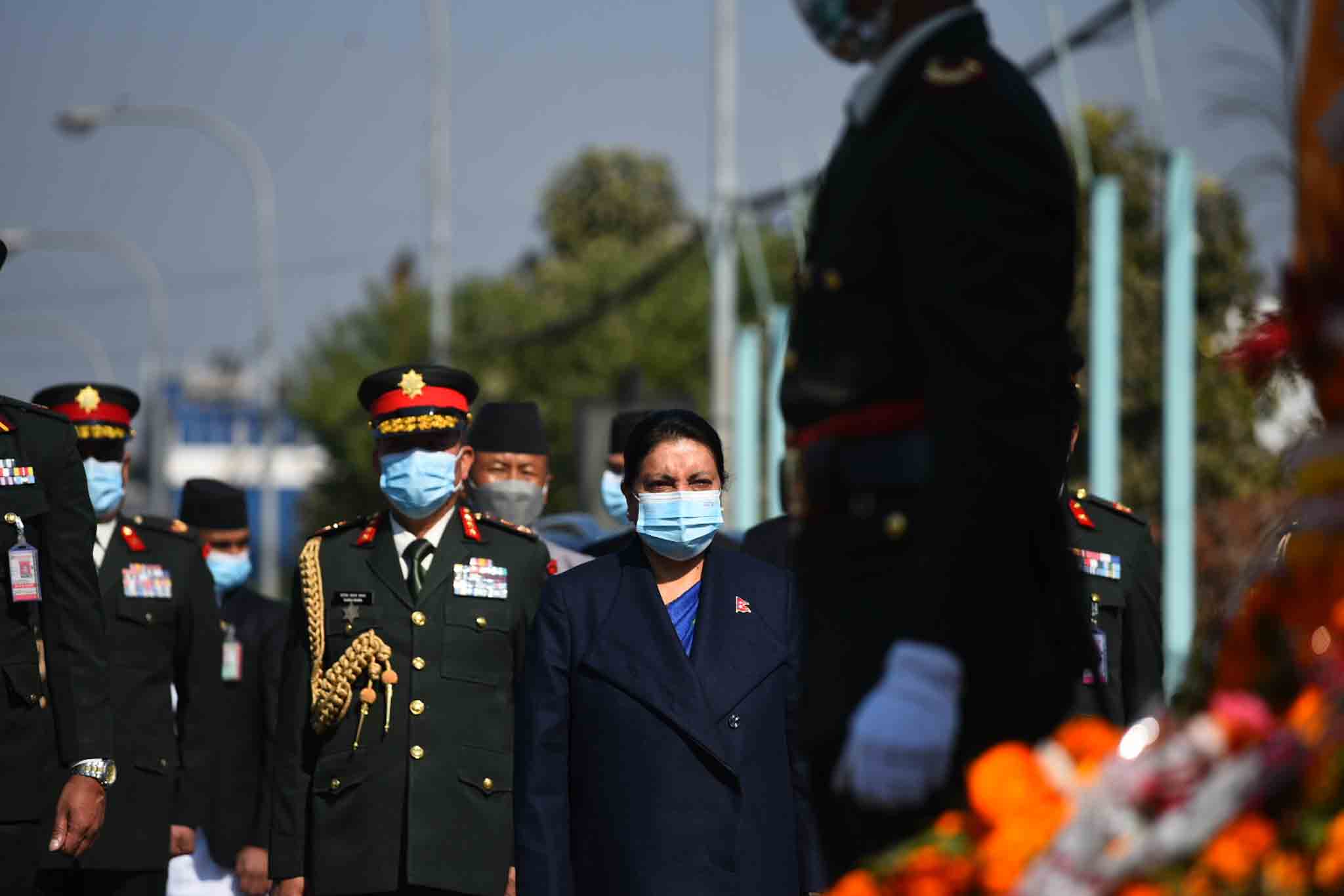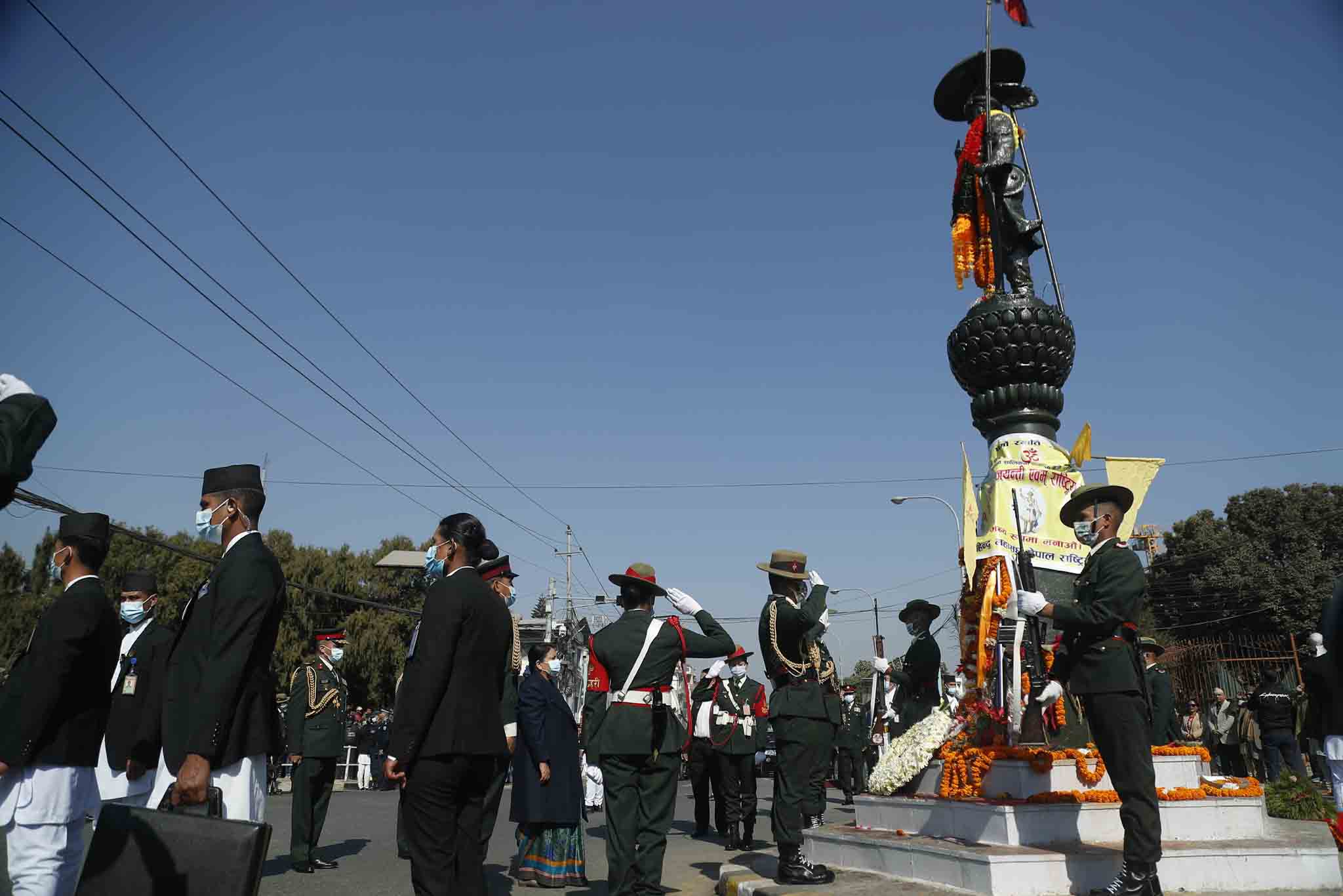 काठमाडौँ- राष्ट्रपति विद्यादेवी भण्डारीले सिंहदरबार अगाडि रहेको पृथ्वीनारायण शाहको शालिकमा मल्यार्पण गरेकी छन्।