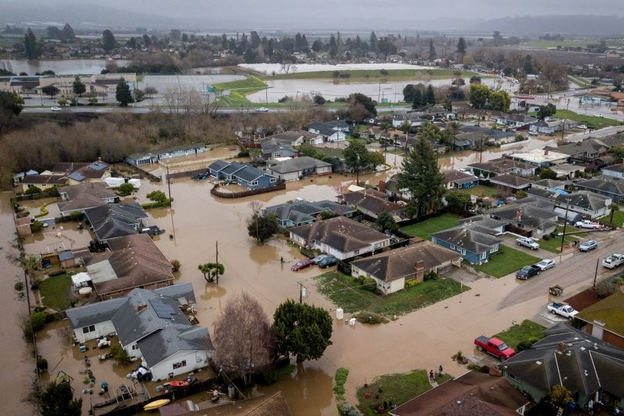 अमेरिकाको सबैभन्दा बढी जनसंख्या रहेको राज्य क्यालिफोर्नियामा आँधीका कारण १७ जनाको ज्यान गएको र केही भौतिक संरचनामा क्षति पुगेको बताइएको छ।