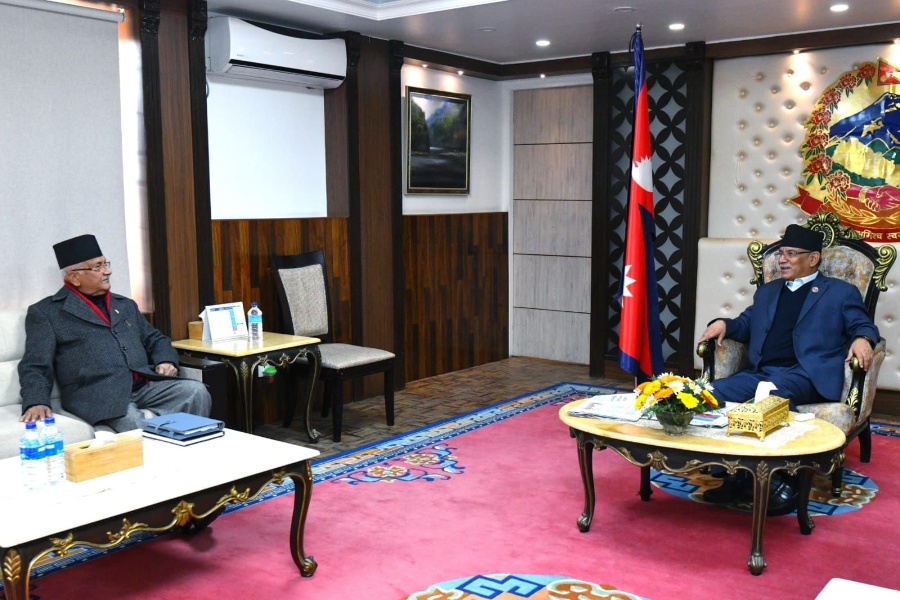 सत्तासाझेदार दलको बैठकअघि प्रधानमन्त्री पुष्पकमल दाहाल र एमाले अध्यक्ष ओलीबीच मन्त्रालयको भागबन्डा लगायतका विषयमा छलफल भएको छ।