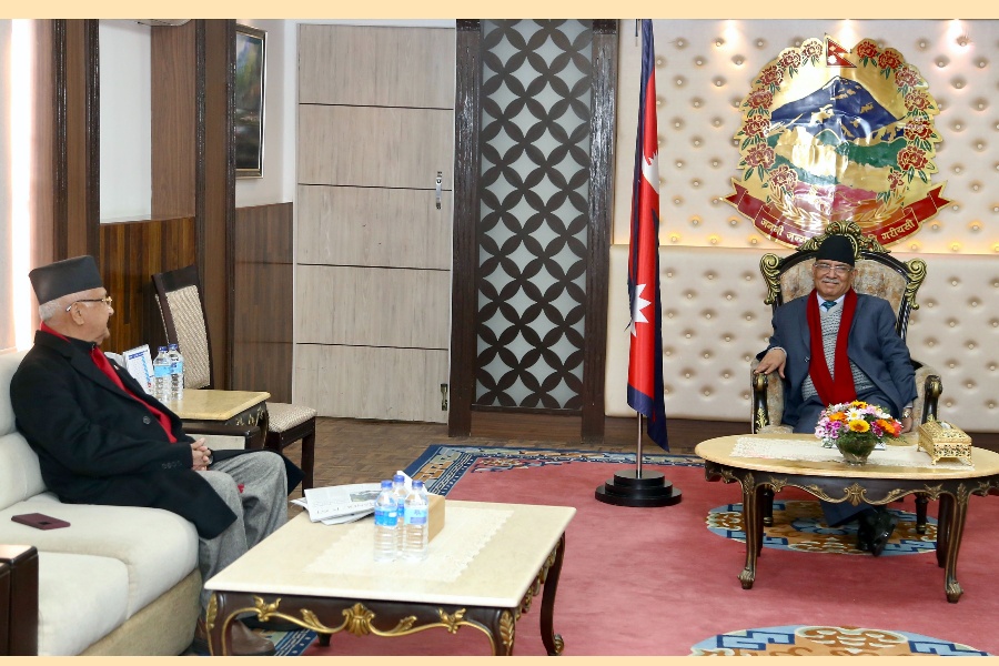काठमाडाैँ– प्रधानमन्त्री पुष्पकमल दाहाल ‘प्रचण्ड’ र नेकपा एमालेका अध्यक्ष केपी शर्मा ओलीबीच भेटवार्ता भएको छ।
