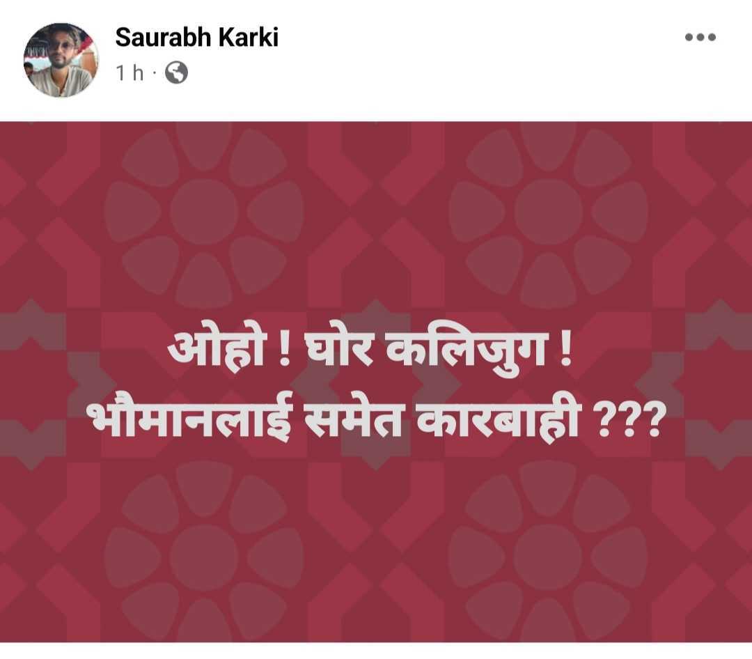एक वर्षअघि लामिछानेले आफैँले लेखेको न्यायालयसँग सम्बन्धित स्ट्याटस सामाजिक सञ्जालमा तीव्र रूपमा शेयर भइरहेको छ। अदालतको आदेश नमान्नेलाई 'आफ्नो ‘बा’को शासन' भन्ने स्ट्याटस हाल धेरैले व्यङ्ग्यात्मक रूपमा शेयर गरिरहेका छन्। सौरभ कार्की व्यङ्ग्य गर्छन्– “घोर कलियुग, भगवान्लाई पनि कारबाही हुन्छ।“
