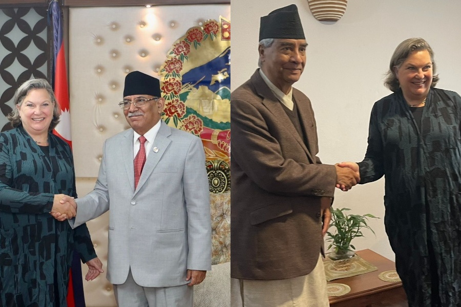 काठमाडौँ- दुईदिने नेपाल भ्रमणमा रहेकी अमेरिकी उपविदेशमन्त्री भिक्टोरिया नुल्यान्डले सोमबार बिहान प्रधानमन्त्री पुष्पकमल दाहाल प्रचण्डसँग भेटवार्ता गरेकी छन्। केही अमेरिकी प्रतिनिधिहरूसहित बिहान प्रधानमन्त्री निवास बालुवाटार पुगी नुल्यान्डले प्रधानमन्त्री दाहालसँग भेटवार्ता गरेकी हुन्। भेटमा द्विपक्षीय सहकार्य र आपसी हितका विषयमा छलफल भएको प्रधानमन्त्री कार्यालयले जनाएको छ।