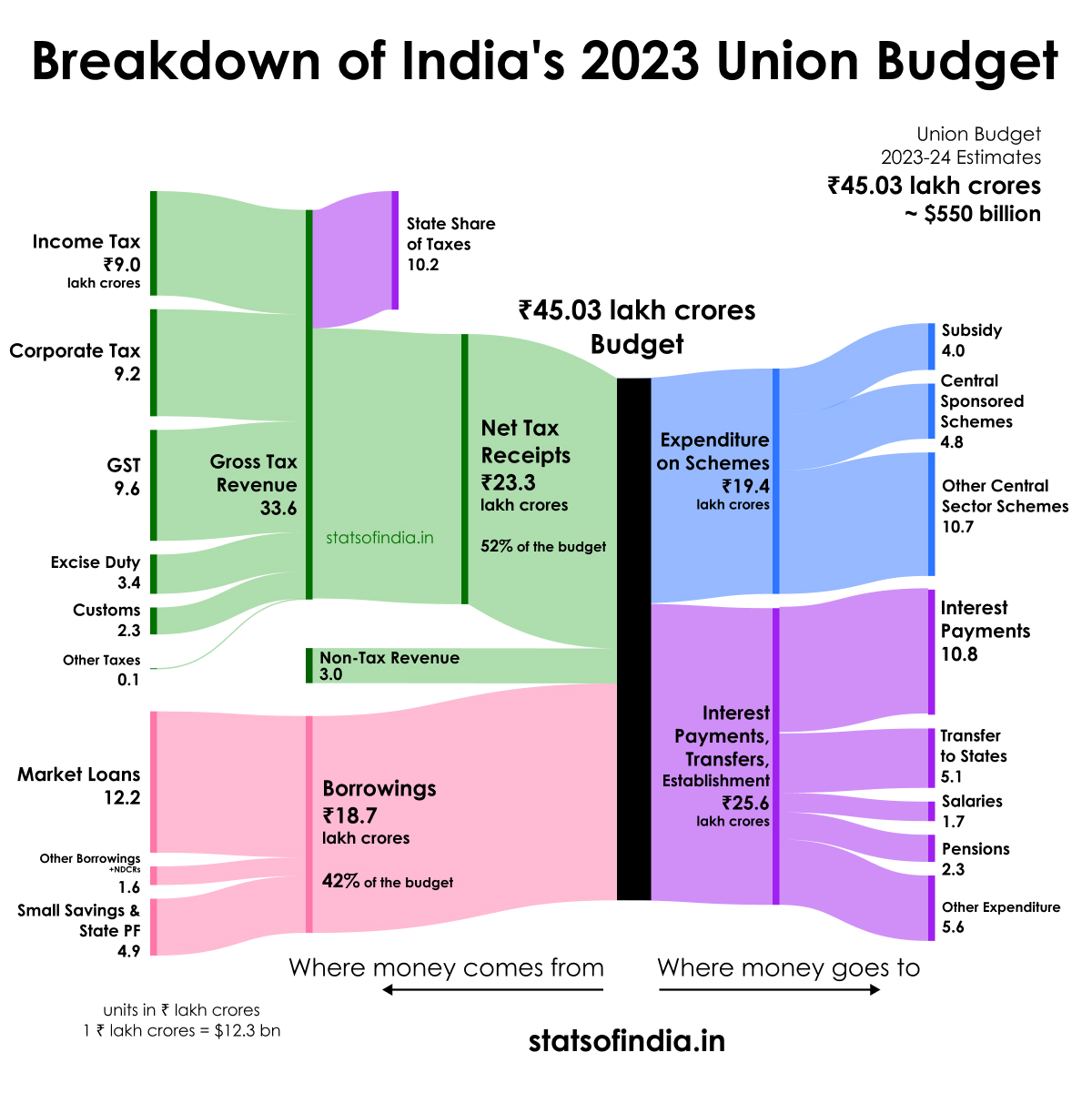 भारतले सन् २०२३/०२४ को बजेट प्रस्तुत गर्दै विभिन्न ठूला निर्णय र योजना सार्वजनिक गरेको छ। प्रधानमन्त्री नरेन्द्र मोदी सरकारको दोस्रो कार्यकालको अन्तिम पूर्ण बजेट प्रस्तुत गर्दै अर्थमन्त्री निर्मला सीतारमणले भारतीय अर्थव्यवस्थालाई विश्वले एक चम्किलो नक्षत्रका रूपमा लिएको बताइन्।