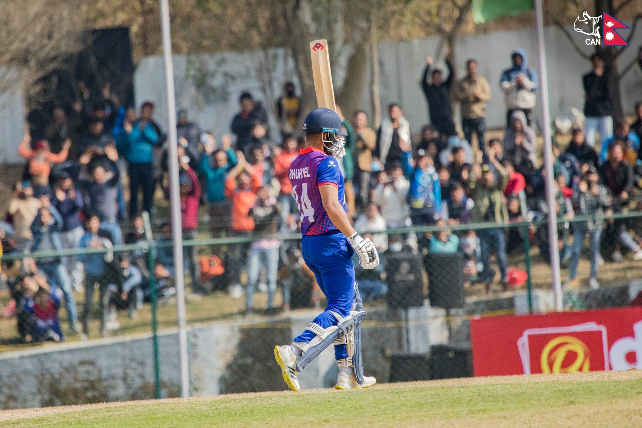 कप्तान रोहितले ७६ बलमा ७ चौका र ३ छक्कासहित ७२ रन बनाए। कुशल र रोहितले तेस्रो विकेटको लागि १३३ रनको साझेदारी गरेका थिए। नेपालले ओडीआईमा गरेको यो कीर्तिमानी साझेदारी हो। यसअघि कीर्तिपुरमै गत वर्ष पपुवा न्यू गिनीविरुद्ध देव खनाल र दीपेन्द्रसिंह ऐरीले तेस्रो विकेटकै लागि १२९ रनको साझेदारी गरेका थिए।