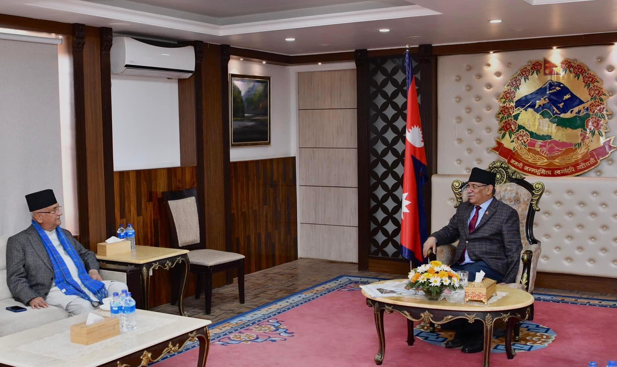 ओली र दाहालबीच दुई घण्टा लामो वार्ता भएको छ। वार्तामा के–के विषयमा छलफल भयो भन्ने सार्वजनिक भइसकेको छैन। बालुवाटार स्रोतले भने वार्ता निष्कर्षविहीन सकिएको बताएको छ।