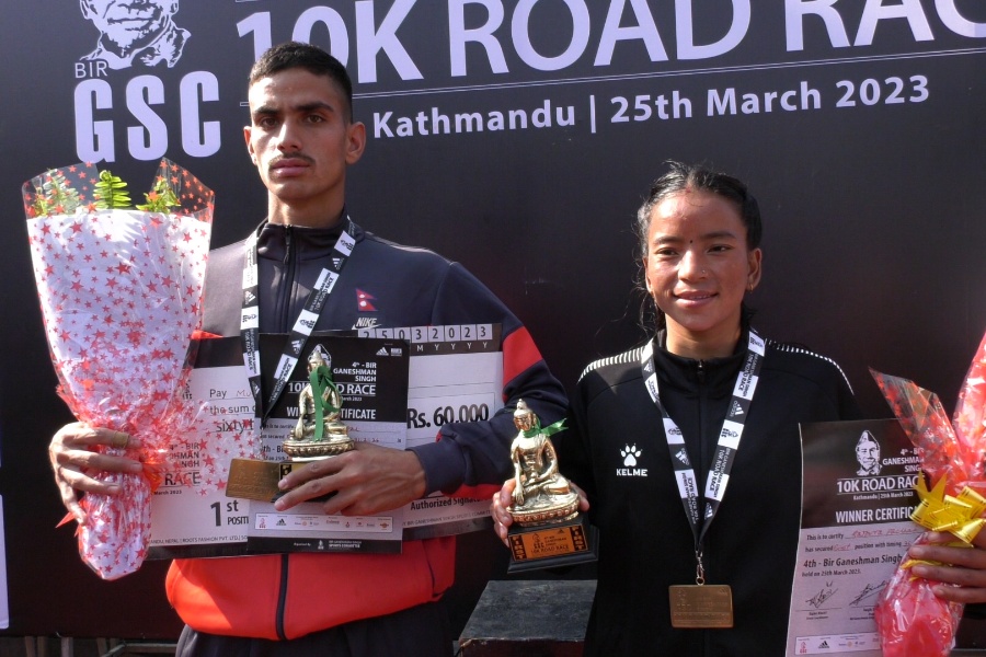 काठमाडौँ– विभागीय टोली त्रिभुवन आर्मीका मुकेश पाल र नेपाल पुलिसकी राजपुरा पछाईले चौथौ वीर गणेशमान सिंह १० के रोड रेसको उपाधि जितेका छन्।