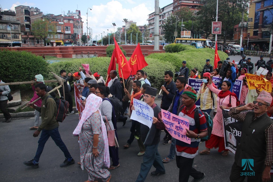 मिटरब्याज तथा ठगीविरुद्ध किसान–मजदुर मोर्चा लेखिएको ब्यानरमा आबद्ध भएर उनीहरूले ‘किसानको भूमि फिर्ता गर’, ‘फर्जी तमसुकका आधारमा भूमि लिलामी बन्द गर’, ‘मिटरब्याजीलाई कारबाही गर’, ‘झुटा आश्वासन बन्द गर’, ‘उत्पीडित किसान एक हौँ’ लगायतका नारा लगाएका थिए।